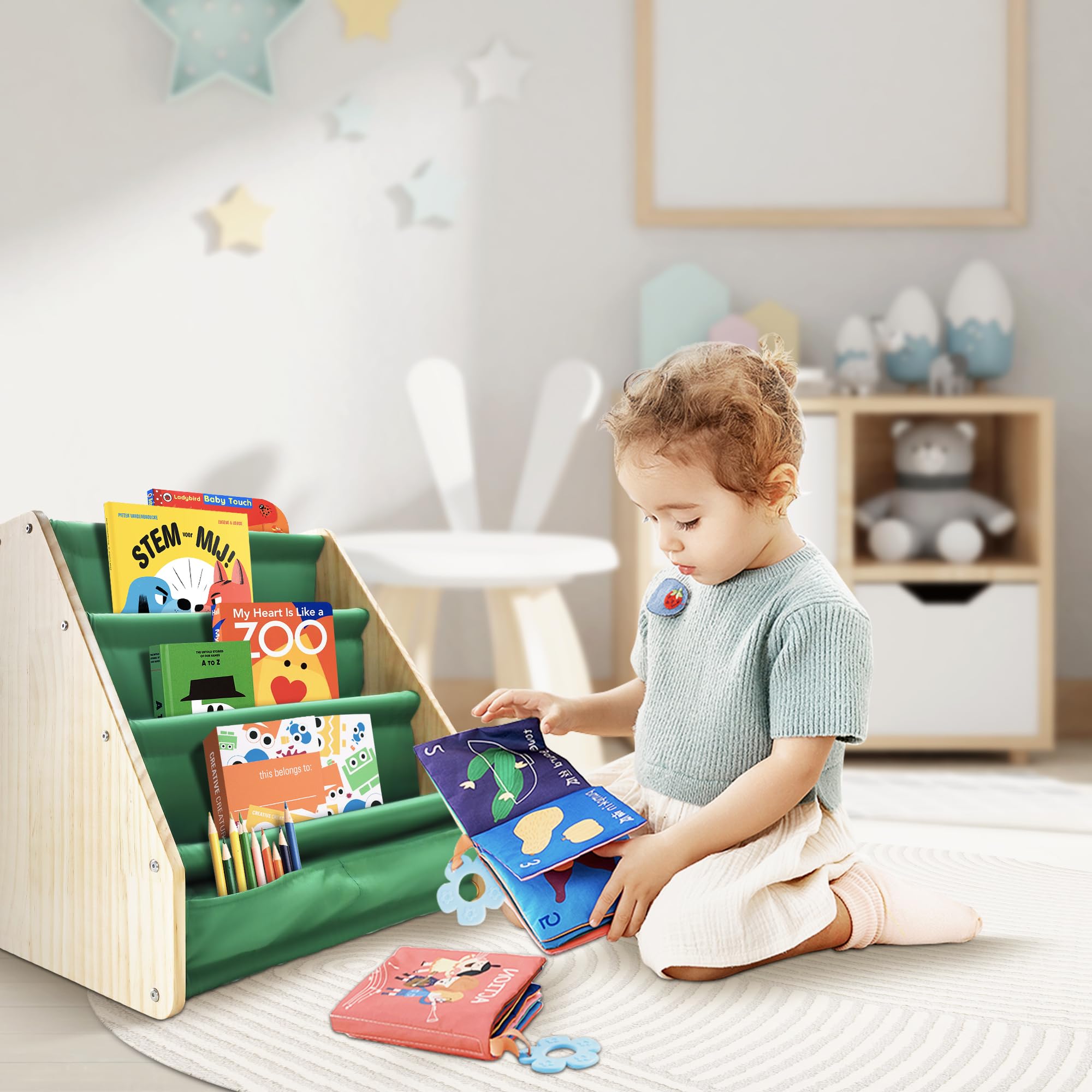 Kids Bookshelf and Toy Storage, Large 3 Tier Book Shelf for Kids Rooms, Sling Baby Bookcase with Stuffed Animal Storage, Toddler M