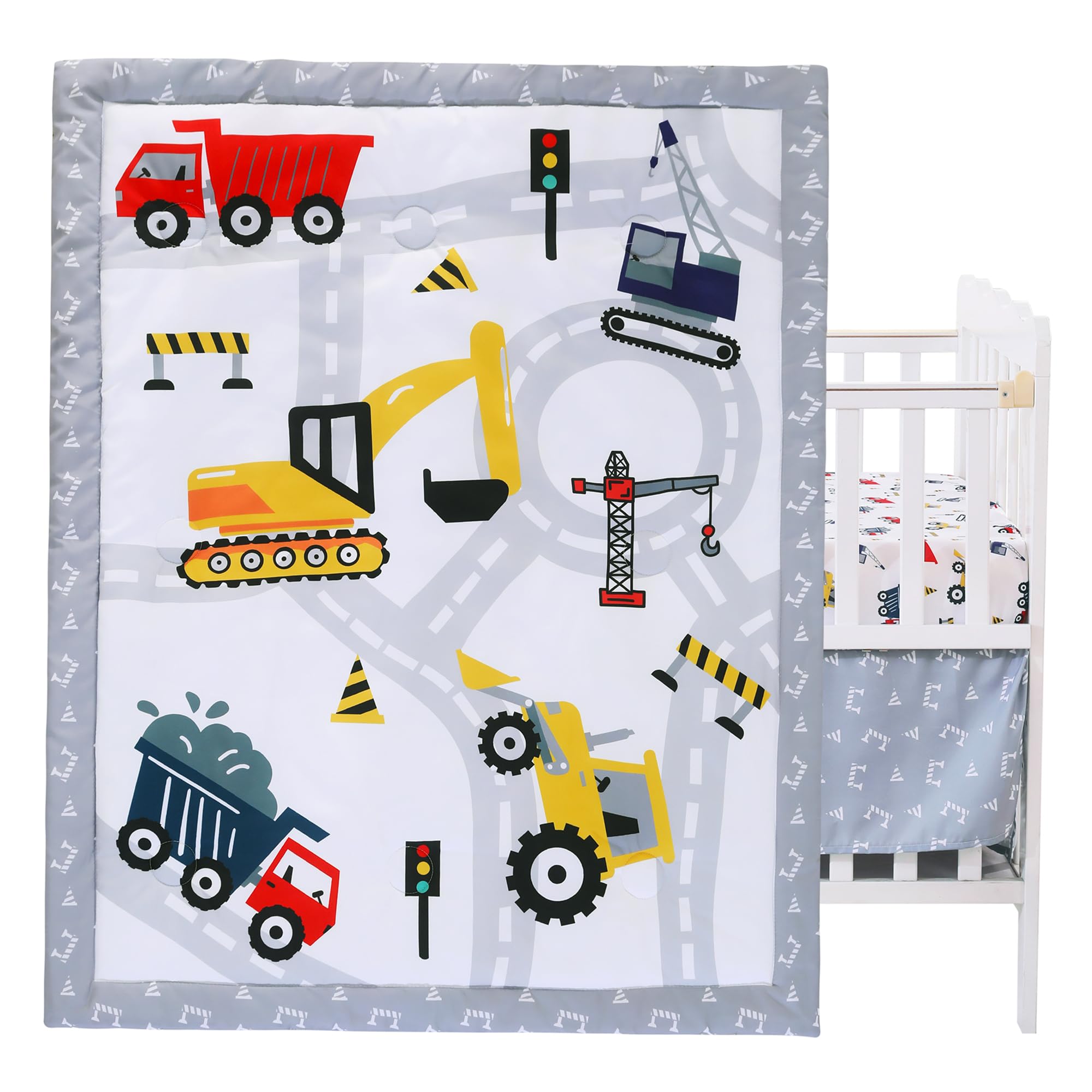 Bedtime Originals Construction Zone – Juego de ropa de cama de 3 piezas para cuna de bebé