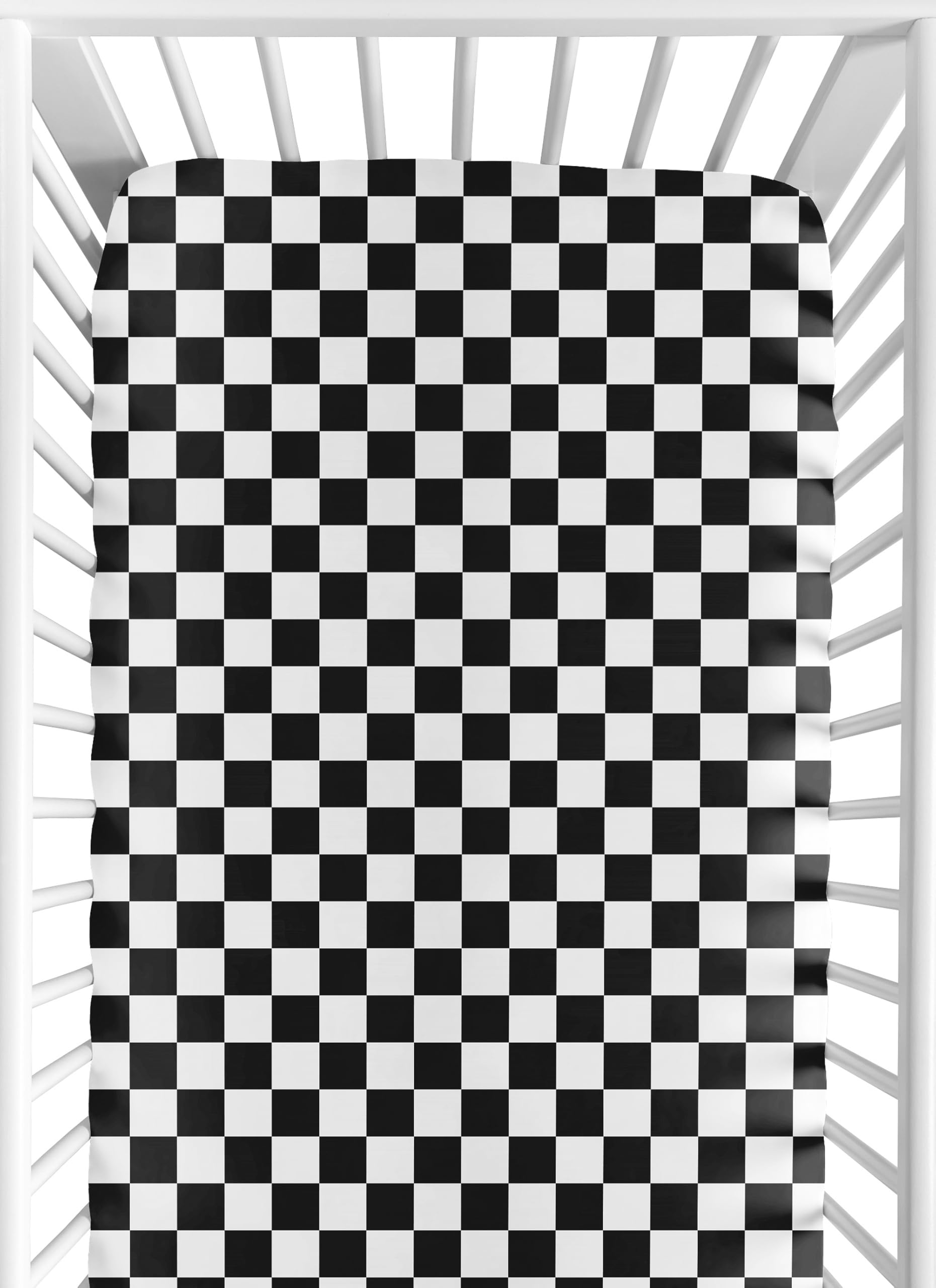 Sweet Jojo Designs Sábanas ajustables para cuna de bebé (cuadros negros y blancos) para niños o niñas, guardería infantil, habitac