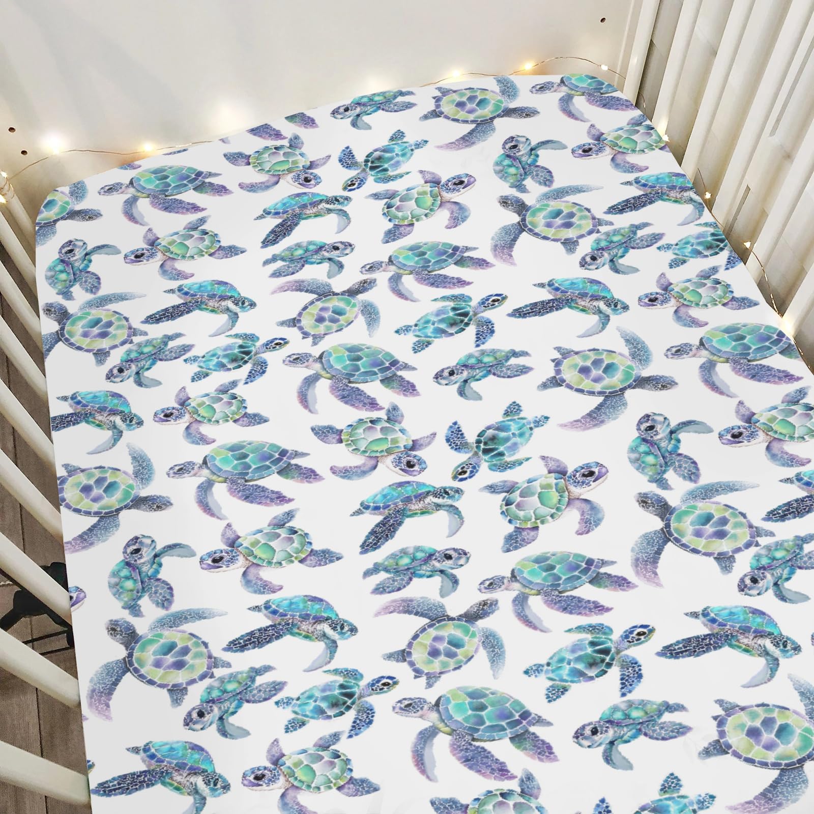 Sábanas para cuna de tortuga marina para bebé de 28 x 52 pulgadas, color azul y verde, suaves, elásticas, para cuna, para cuna est
