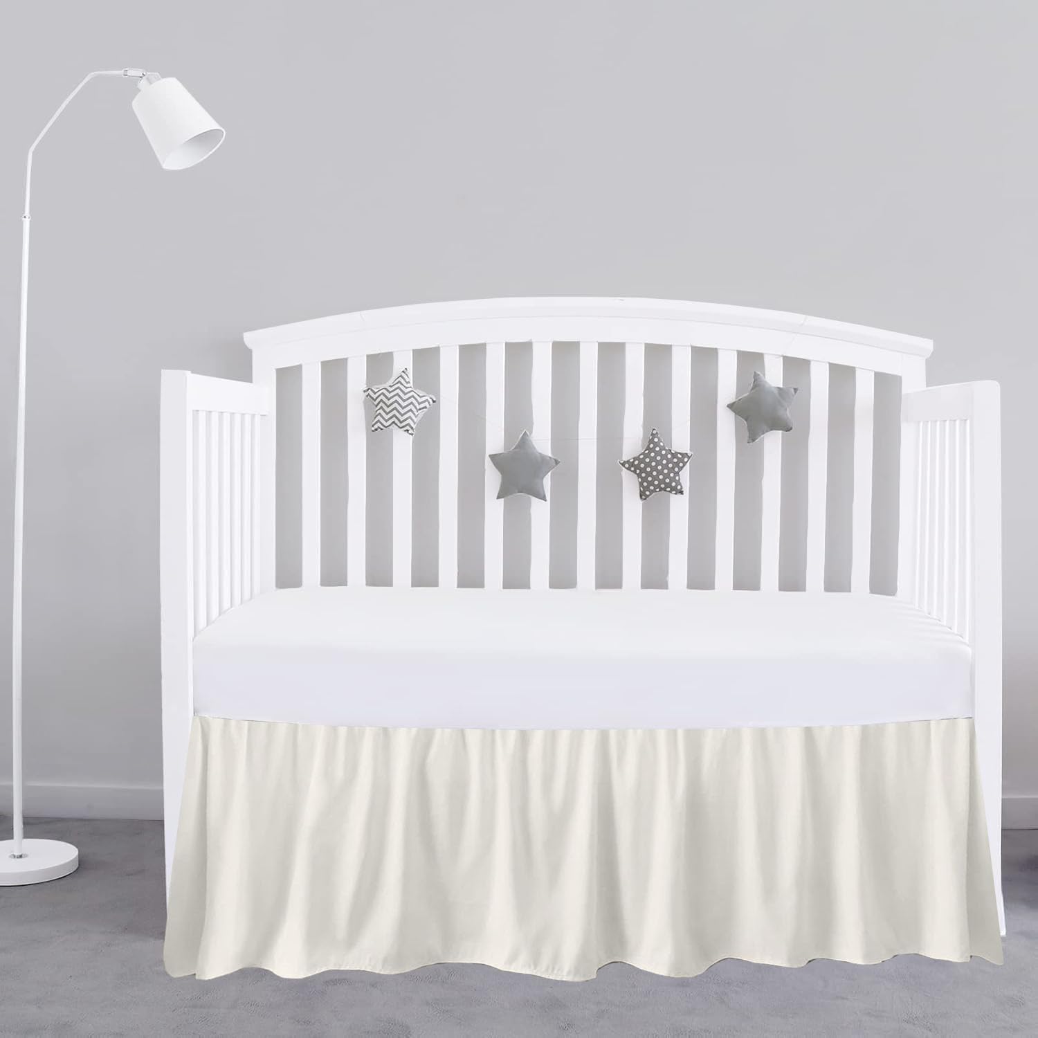 Falda de cuna color marfil de 28 x 52 pulgadas con caída de 14 pulgadas, falda de cuna con volantes y esquinas divididas, falda de