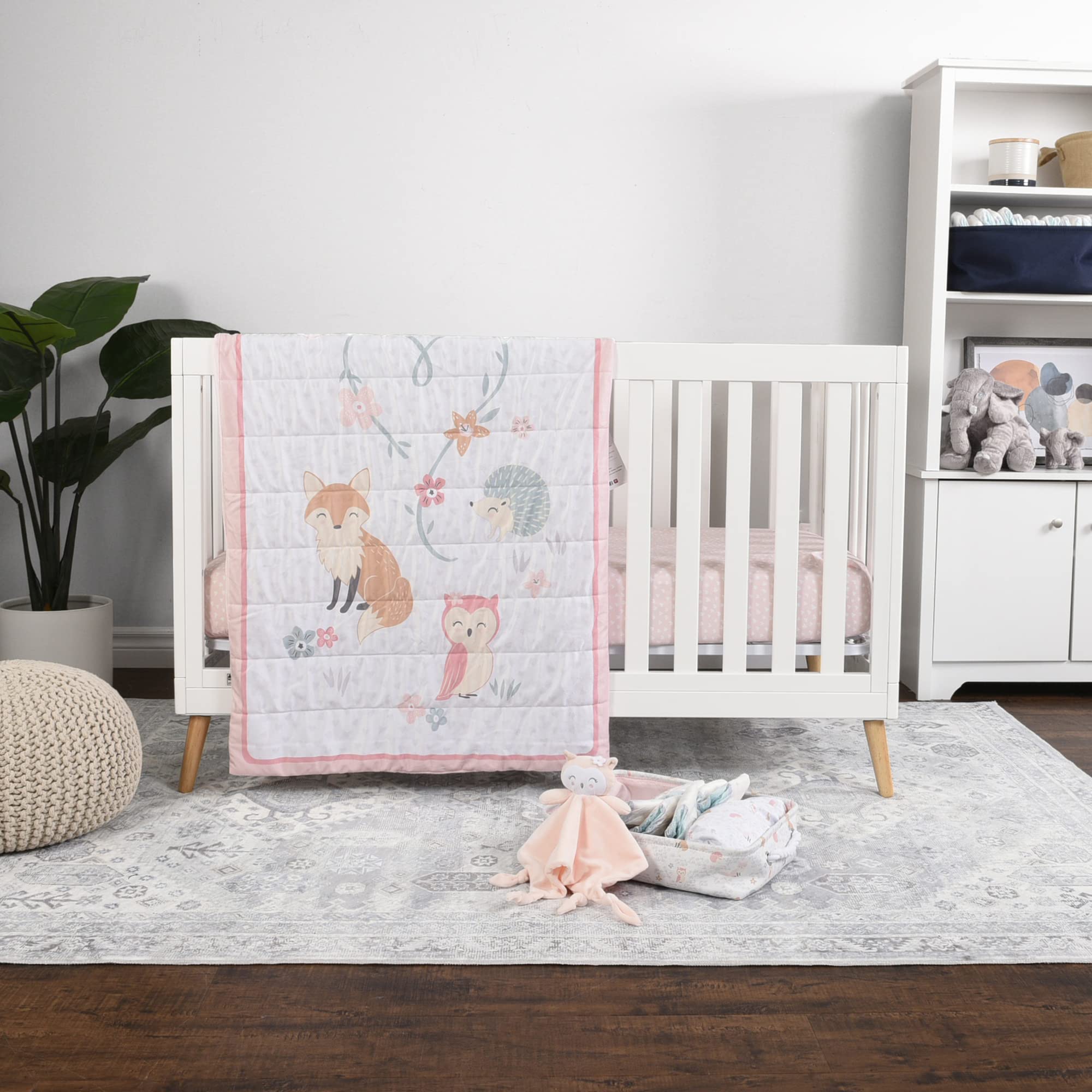 EXPRESSIONS Juego de ropa de cama de 5 piezas para cuna, color rosa bosque, incluye manta reversible para bebé, 2 sábanas ajustabl