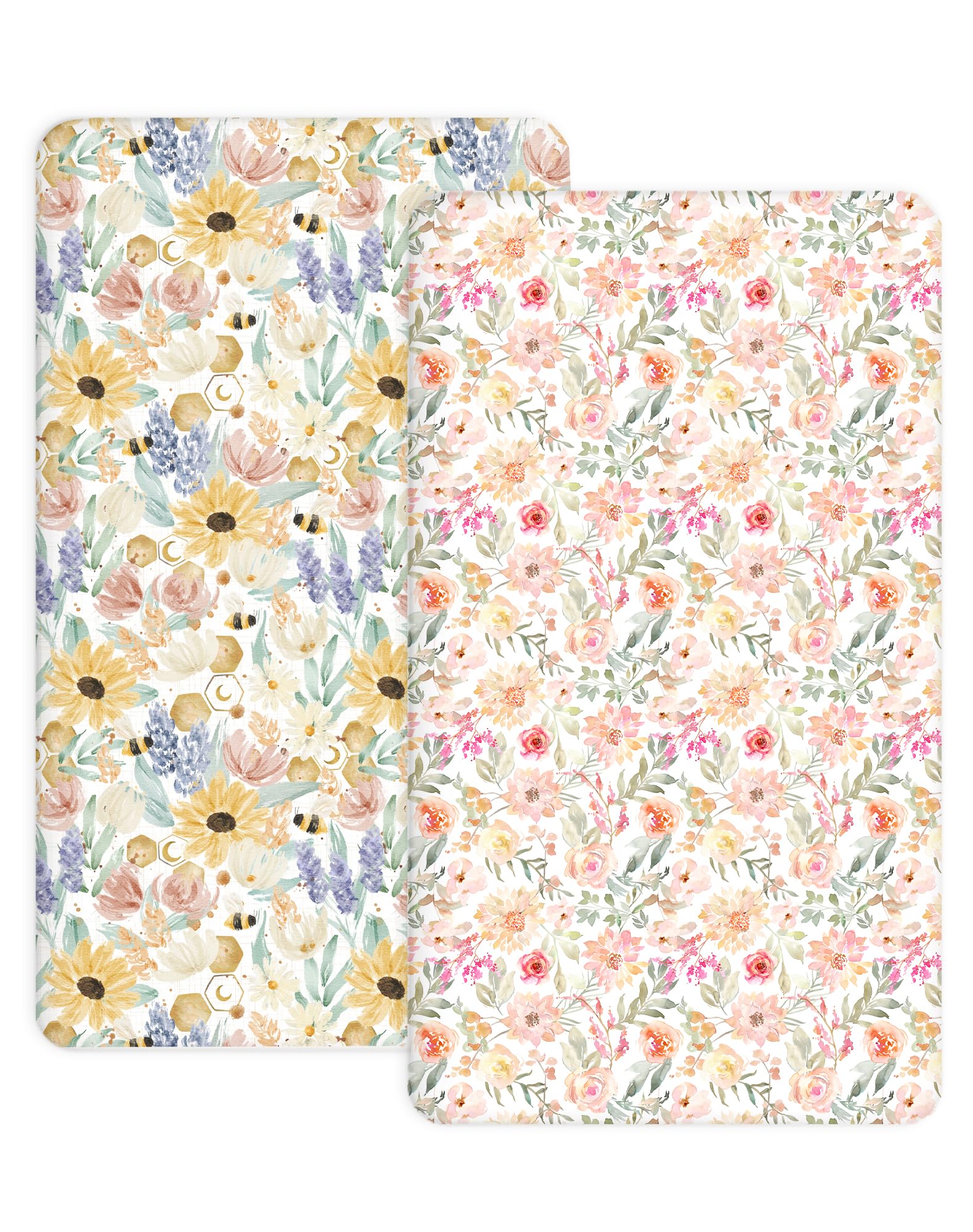 Mebie Baby – Sábana para cuna de muselina floral crema, sábanas suaves y transpirables para bebés, ropa de cama neutra moderna par