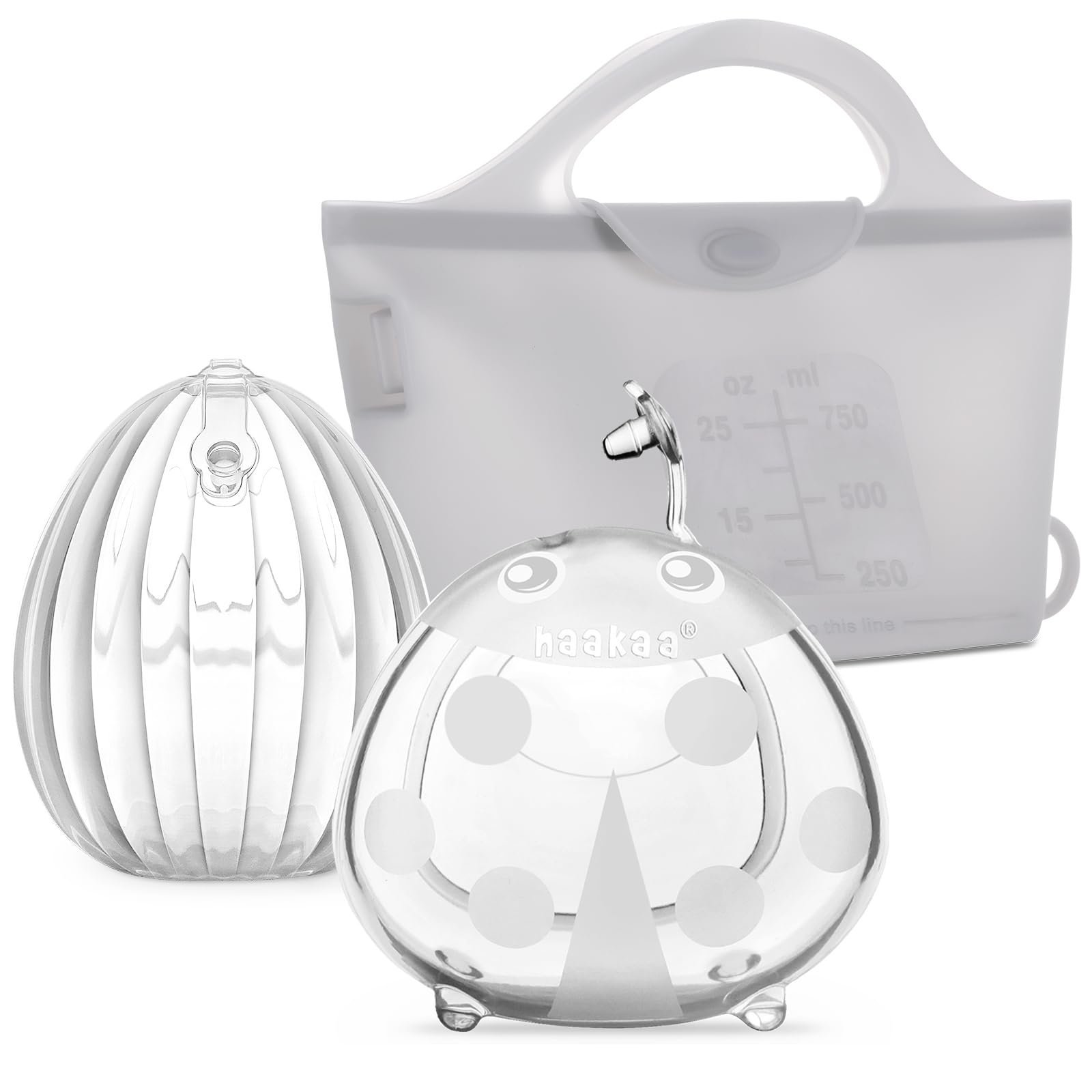haakaa Juego de recolector de leche, bomba de concha de 2.5 fl oz, colector de leche de 2.5 fl oz y bolsa esterilizadora de 25.4 f