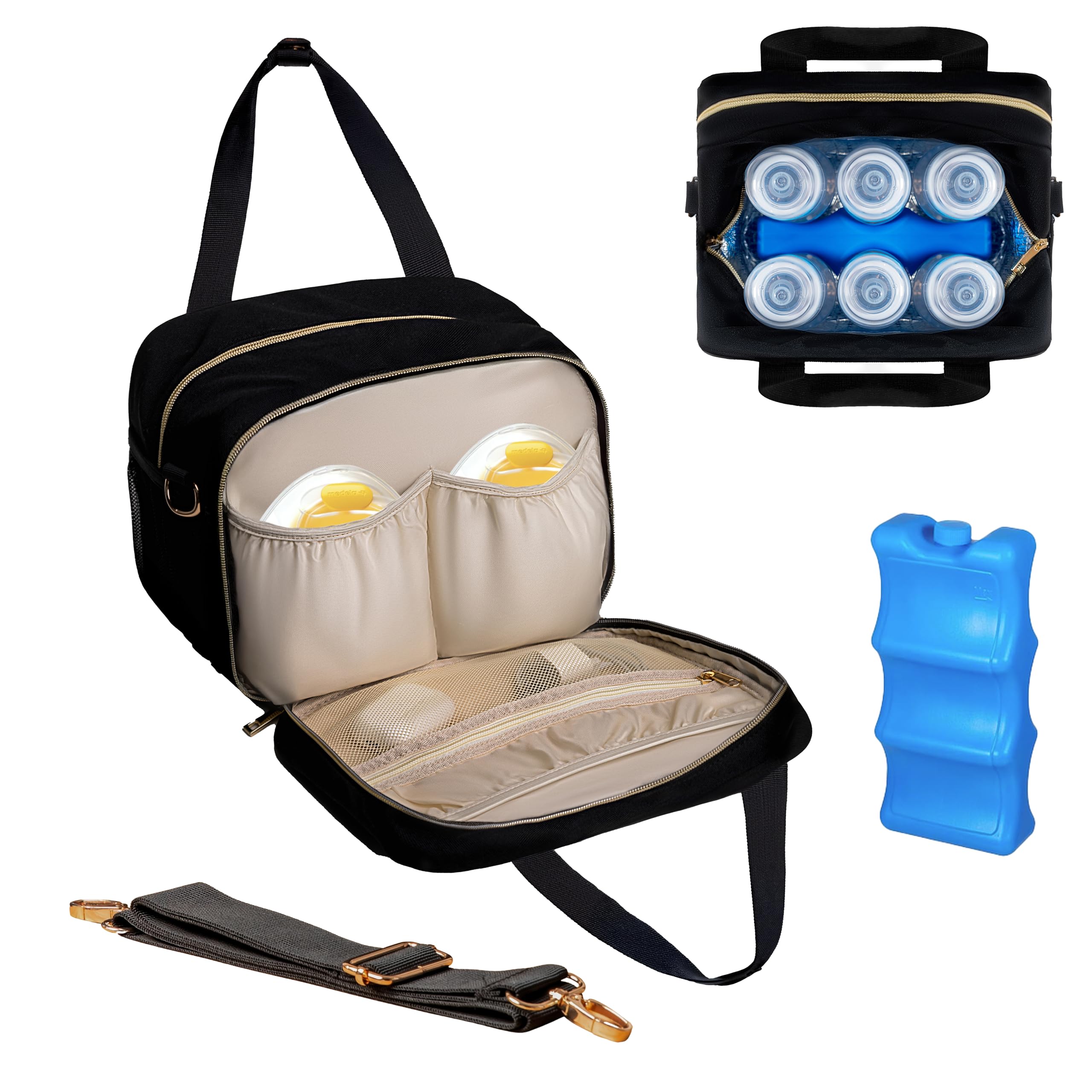 Canero Bolsa enfriadora de leche materna con correa para el hombro y bolsa de hielo para 6 botellas de hasta 11 onzas, compatible
