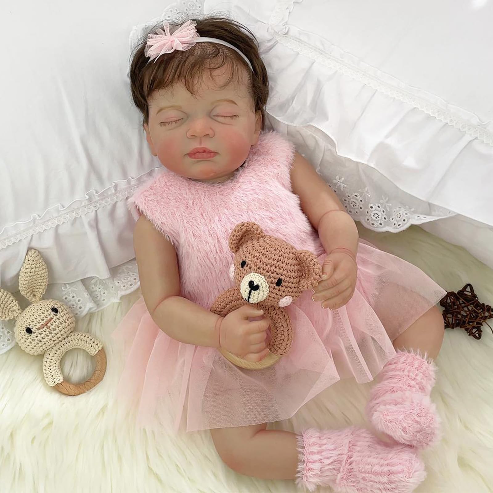 Muñecas de bebé Reborn – Muñeca realista de 20 pulgadas, muñeca de bebé realista con ojos cerrados de la vida real en vestido rosa