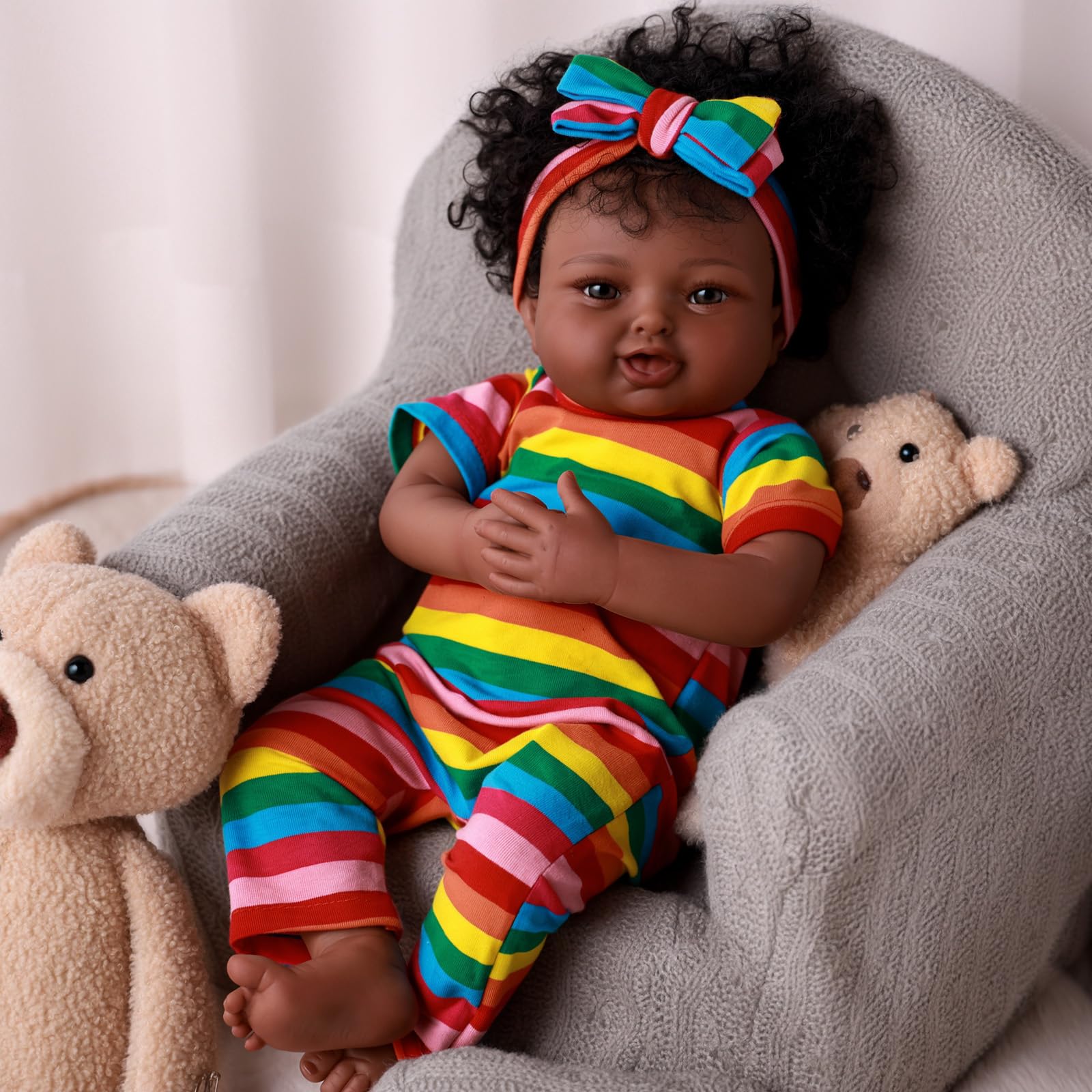 Aori Reborn Baby Dolls Black Girl – Muñeca recién nacida realista americana negra de 20 pulgadas con accesorios de alimentación, g