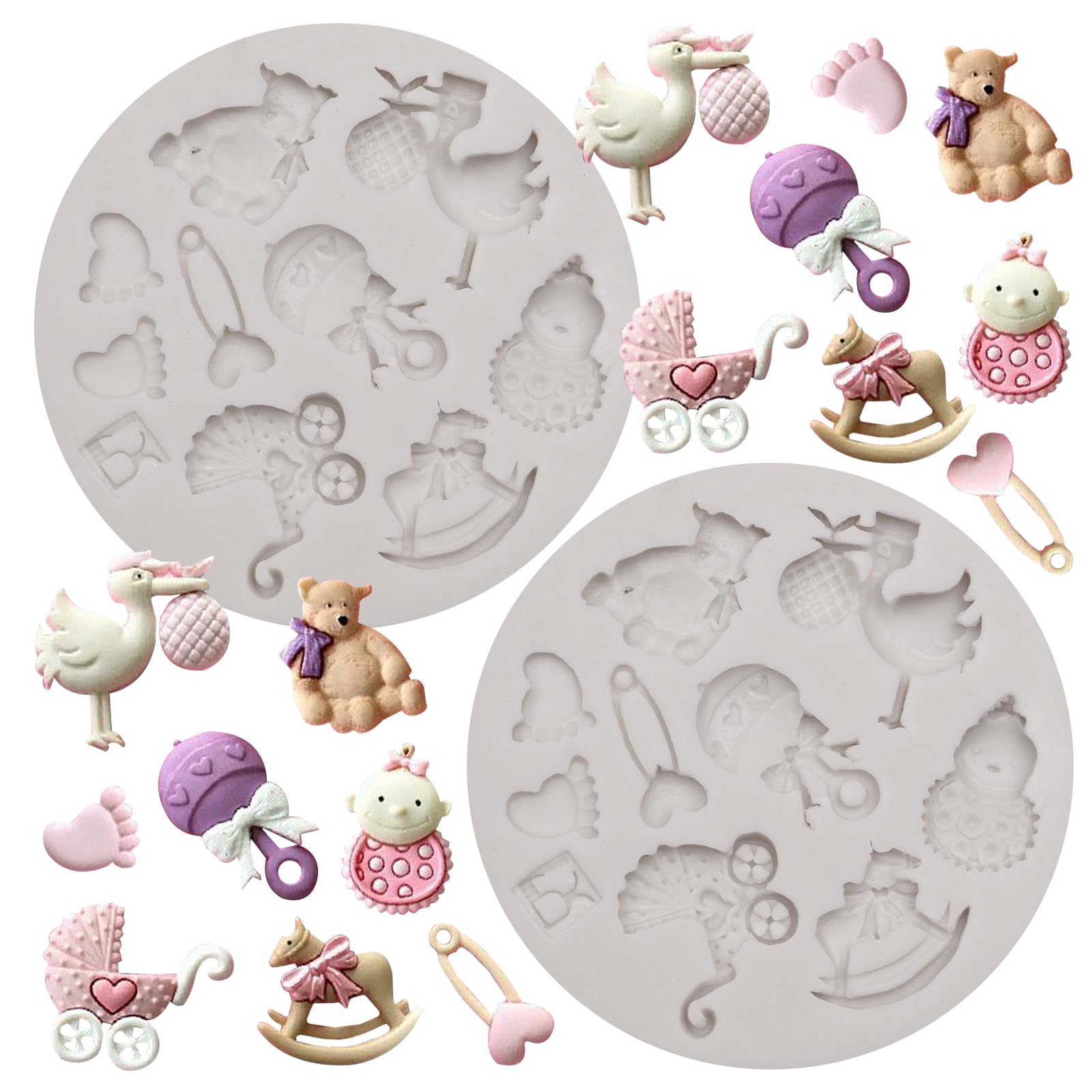 Molde de silicona para baby shower, moldes de fondant con diseño de artículos de bebé, juego de 2, gris
