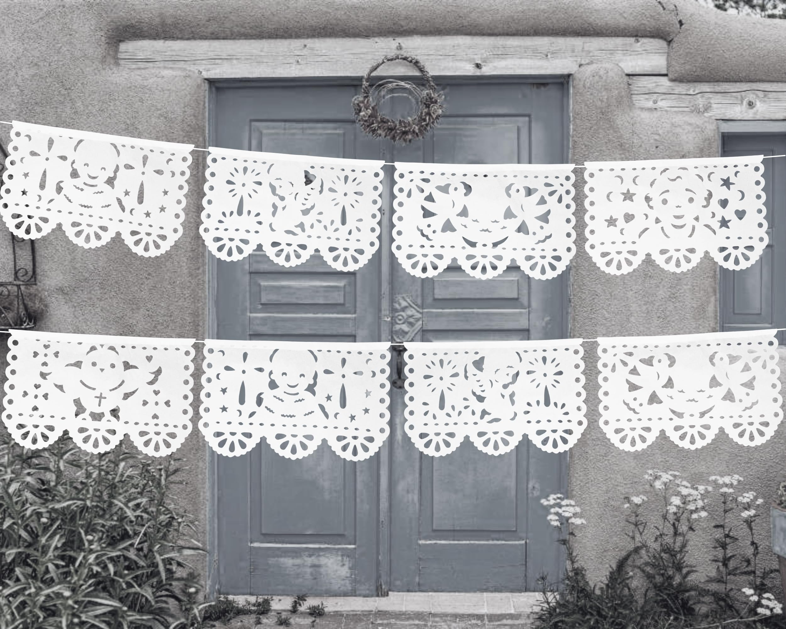 Decoración de fiesta de baby shower para niño o niña, más de 60 pies de papel de seda blanco Picado blanco guirnaldas con ángeles,