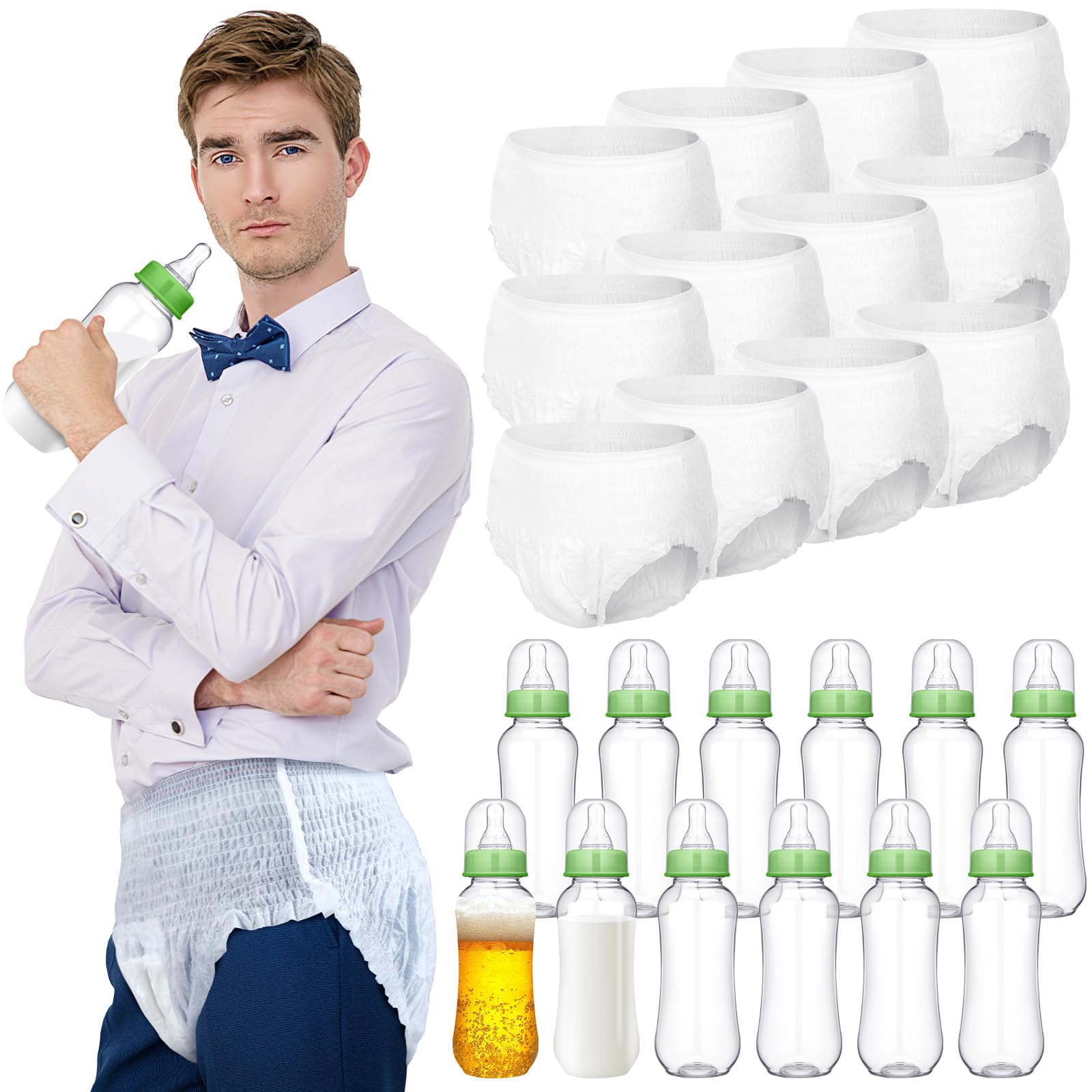 Hushee Juego de 12 juegos divertidos de botella de plástico para baby shower, juego de pañales, baby shower, revelación de género,