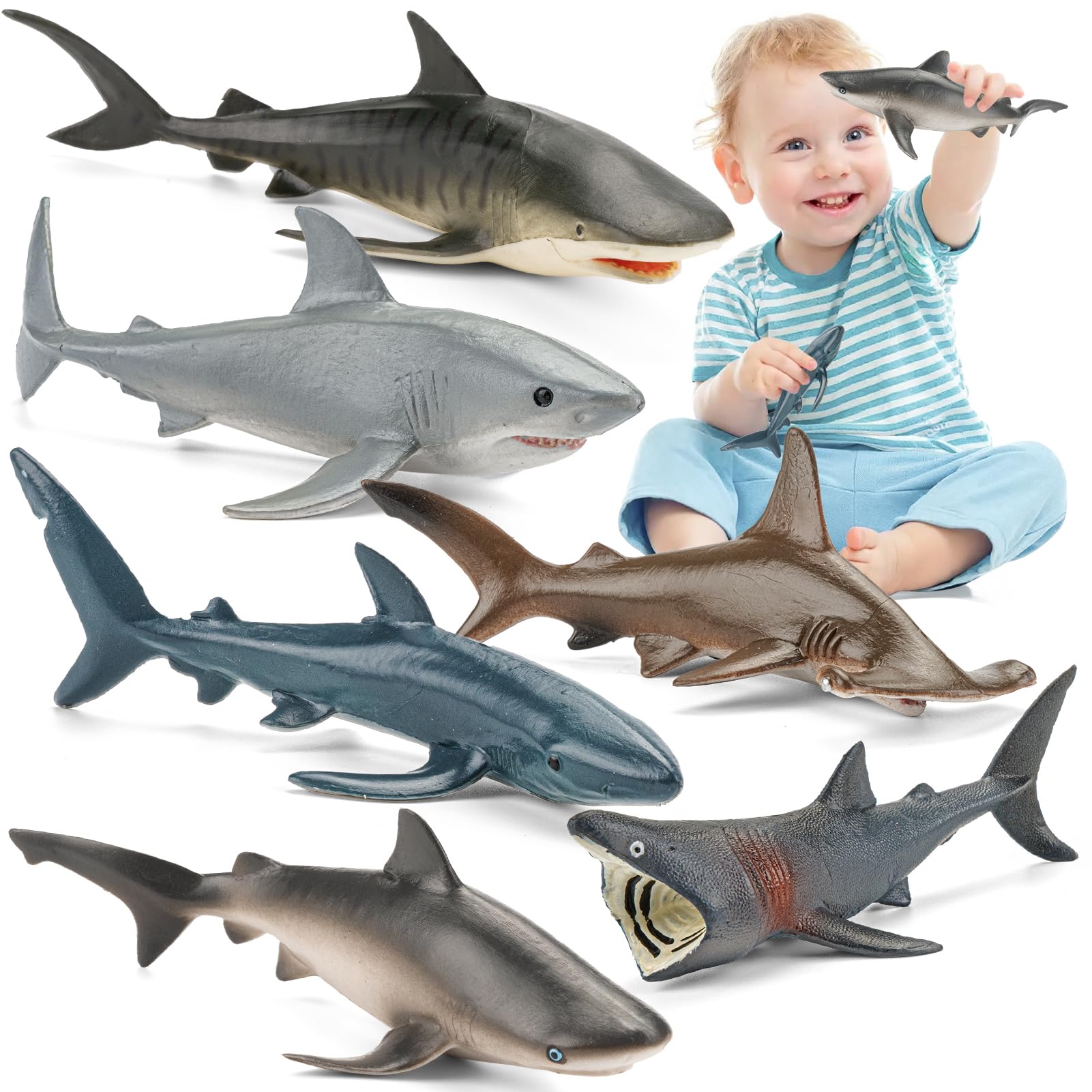 6 figuras realistas de tiburón de 5 a 7 pulgadas para niños pequeños de 3 a 5 a 7 años, juguetes de baño grandes de animales del o
