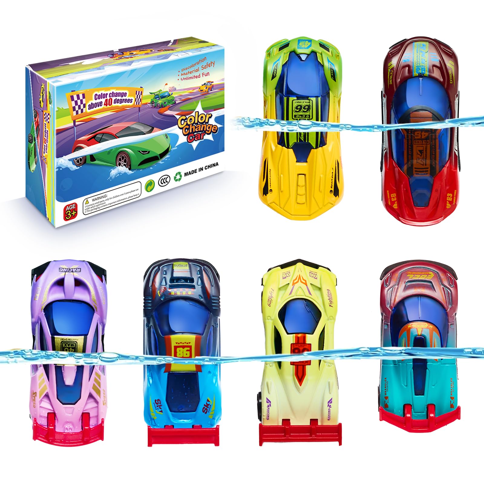 Serie de autos de carreras que cambian de color – 6 piezas de juguete deportivo que cambian de color, juego de juguetes de baño de