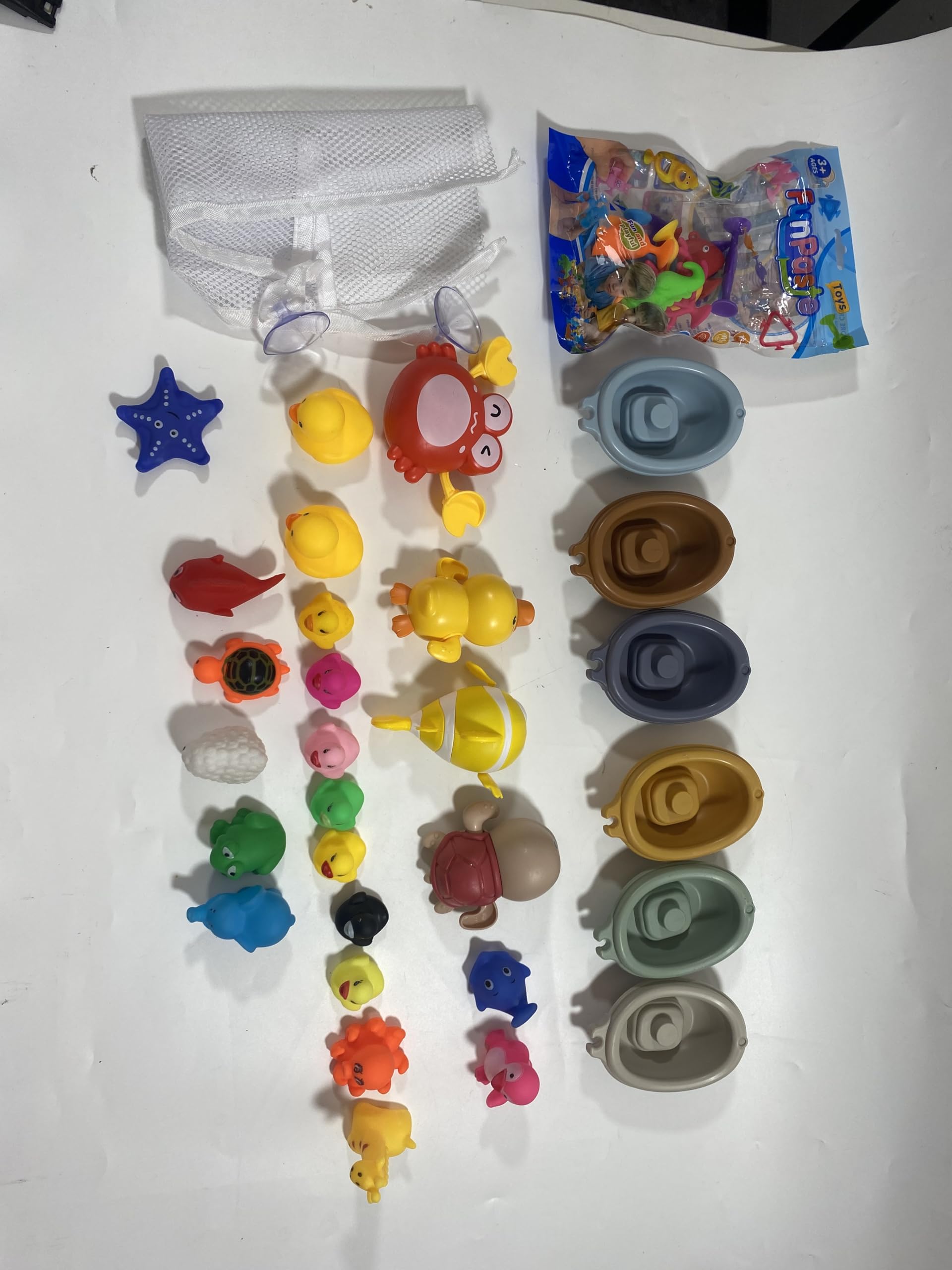 43 PCS Baby Bath Toys for Toddlers Babies,Floating Boat Sea Animals Bulk Floater Duck Water Play Toys, Swimming Bathtub Storage Ba