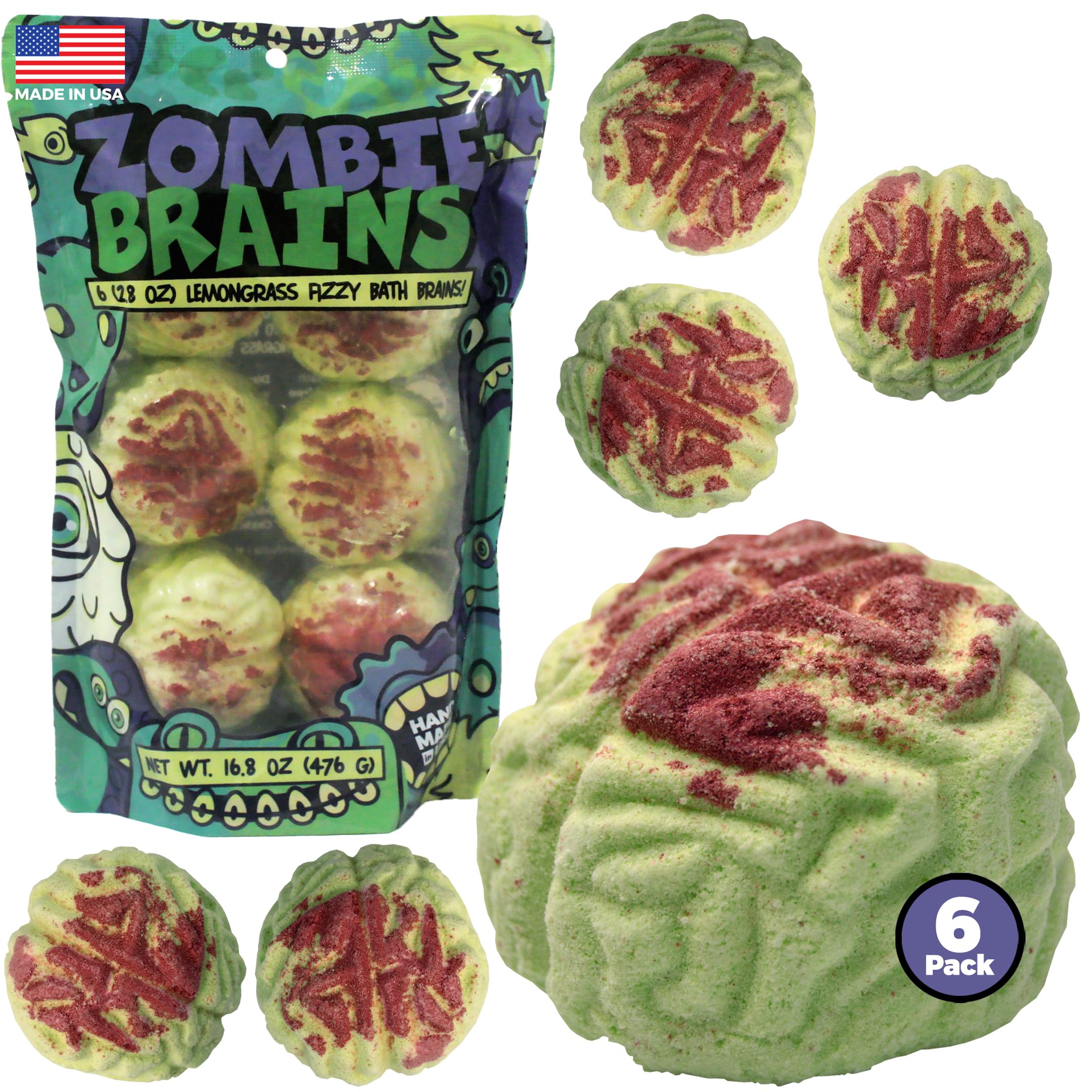 Zombie – Bombas de baño cerebrales – Paquete de 6 bombas de baño para niños y niñas, regalos de Halloween para niños, divertidos r