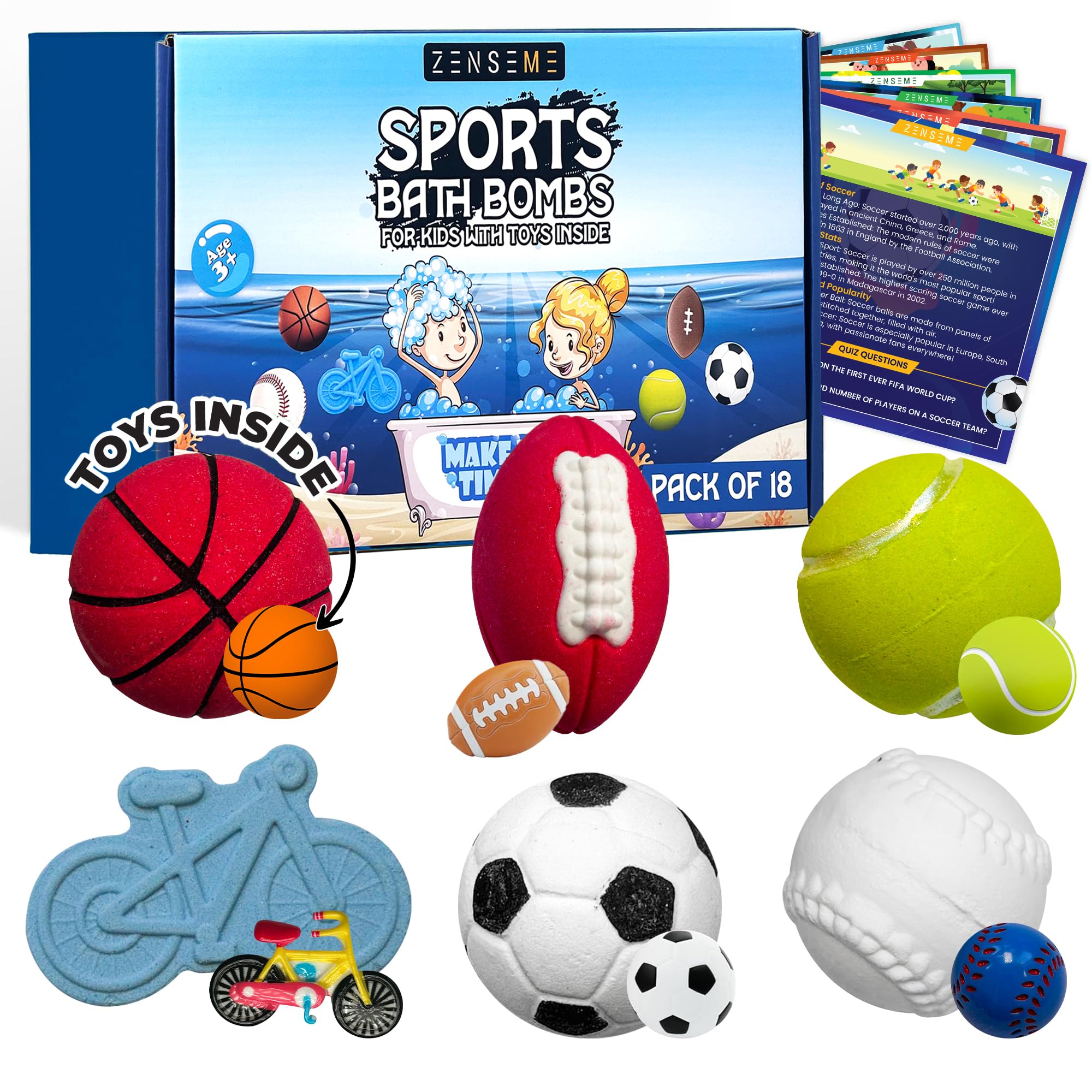 Bombas de baño con juguetes en el interior con tarjetas flash – Bombas de baño deportivas para niños – Set de regalo de 18 perfuma