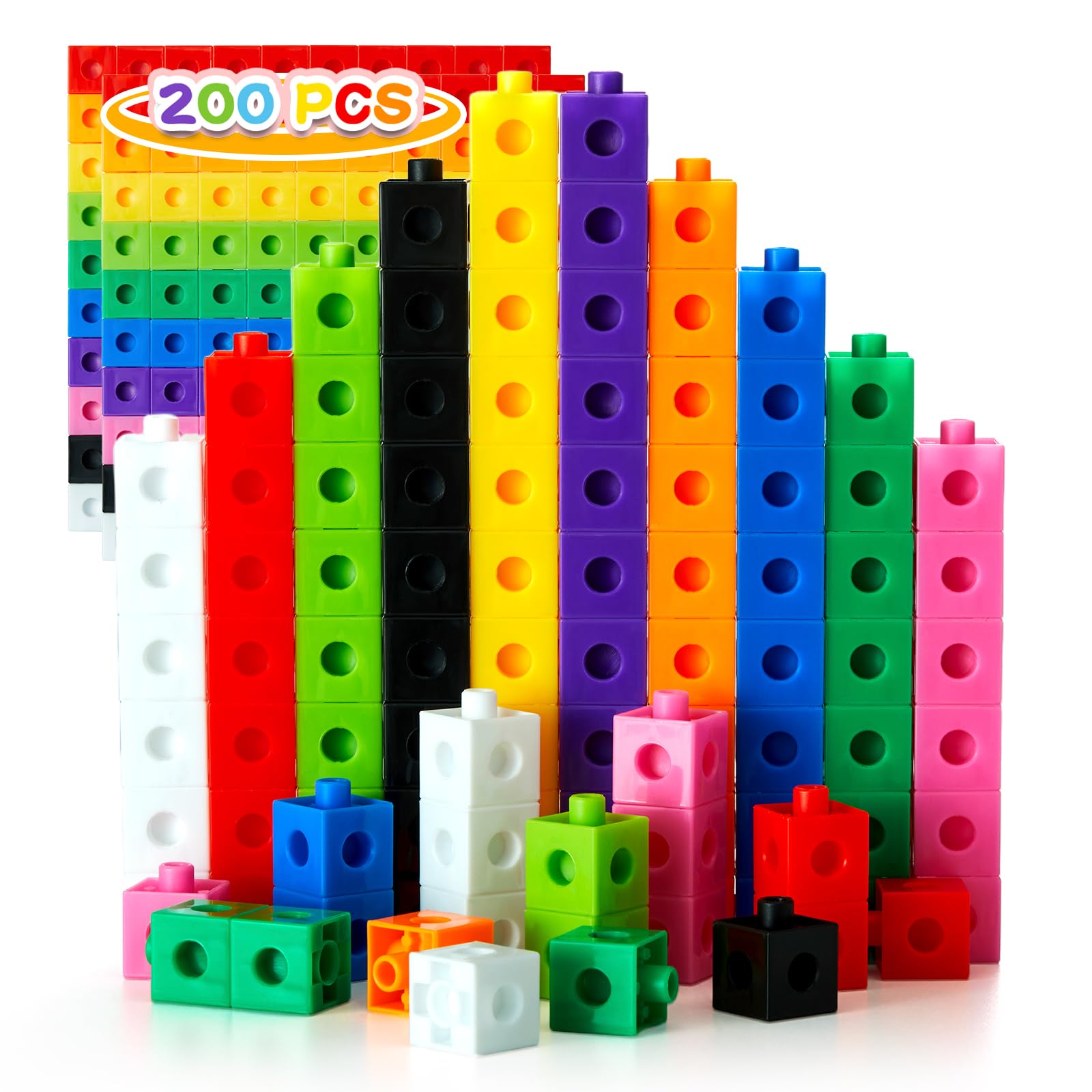 Juego de 200 cubos de enlace para niños para matemáticas, cubos de conexión STEM manipulativos matemáticos bloques de conteo para