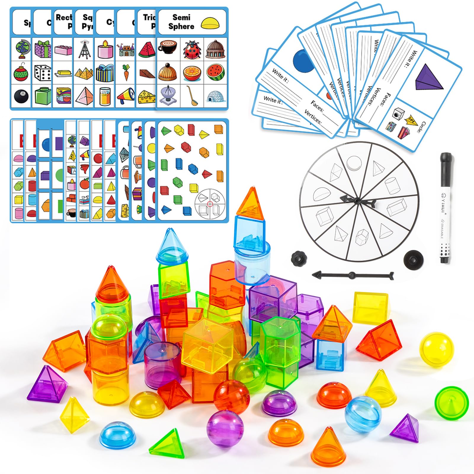 60 piezas de formas 3D para enseñanza – Manipulativos de mesa ligera – Formas geométricas para el aula