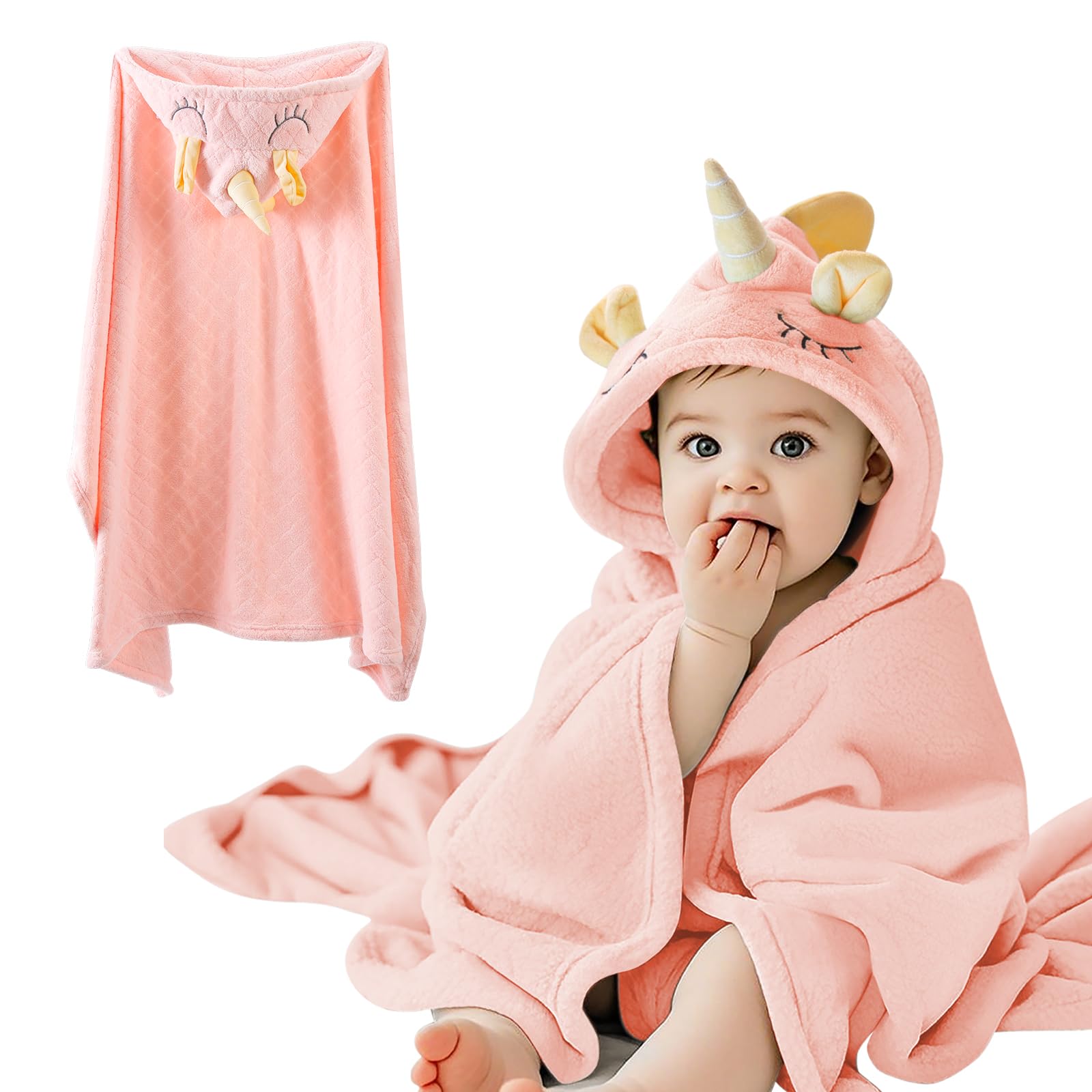 Toalla de bebé con capucha de animales lindos toallas de bebé de forro polar coral suave con capucha, toalla de baño grande de 27