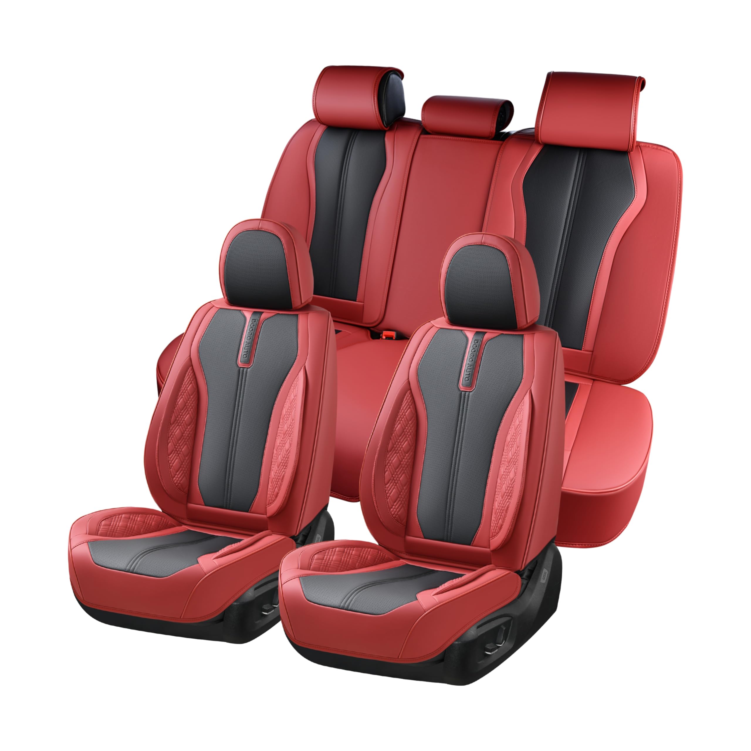 Doogo Funda de asiento universal para automóvil, transpirable, de cuero rojo napa de alta calidad, ajuste universal para automóvil