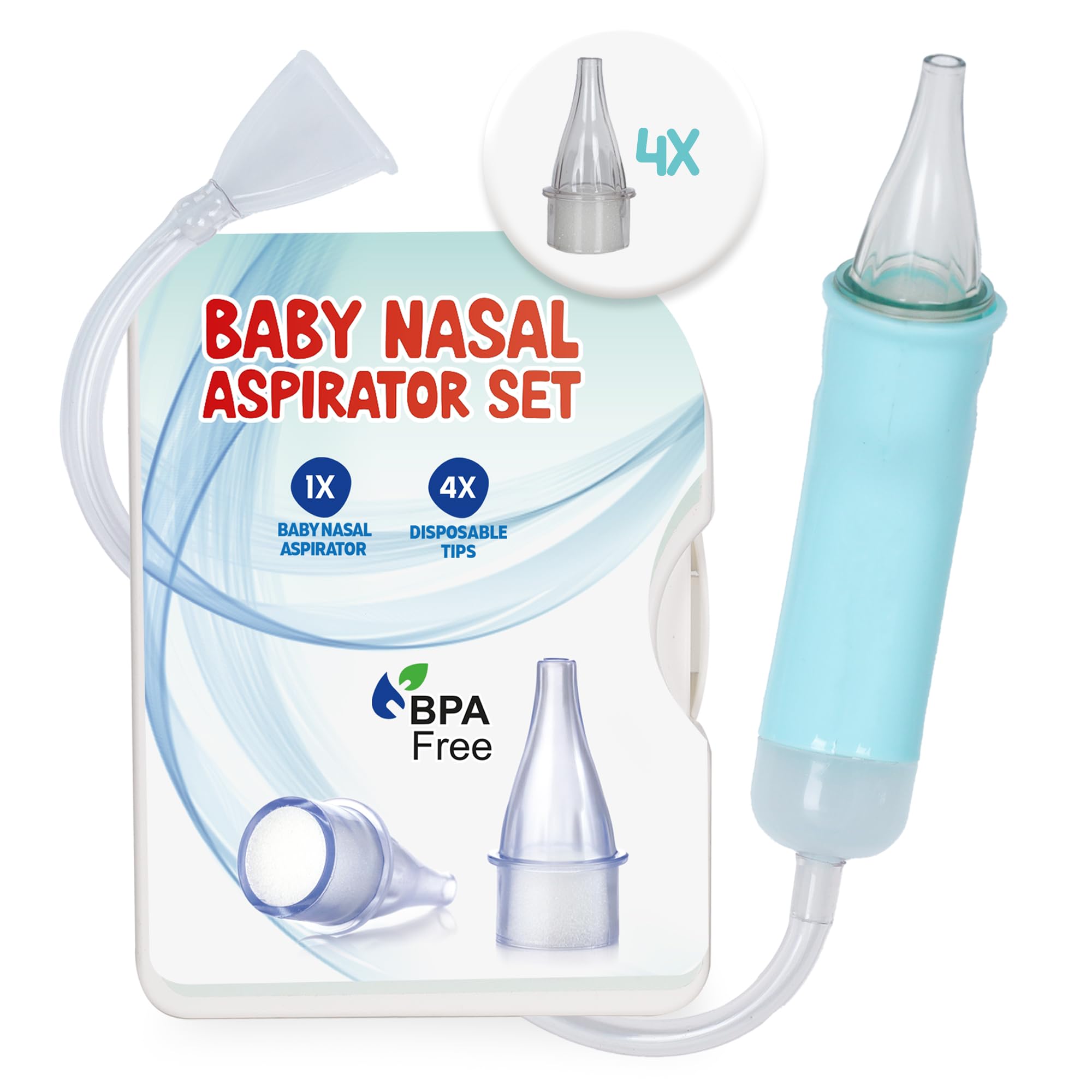 Aspirador nasal para bebés y jeringas, paquete de irrigador nasal con 24 puntas desechables y 4 jeringas nasales para bebés | Cont