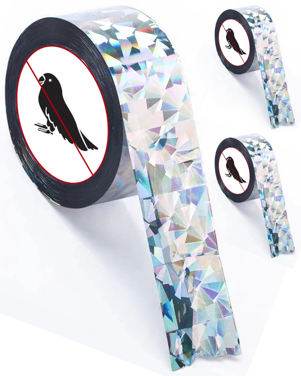 2 cintas de 502 pies, cinta reflectante holográfica de doble cara, dispositivos repelentes de pájaros audibles visuales disuasorio