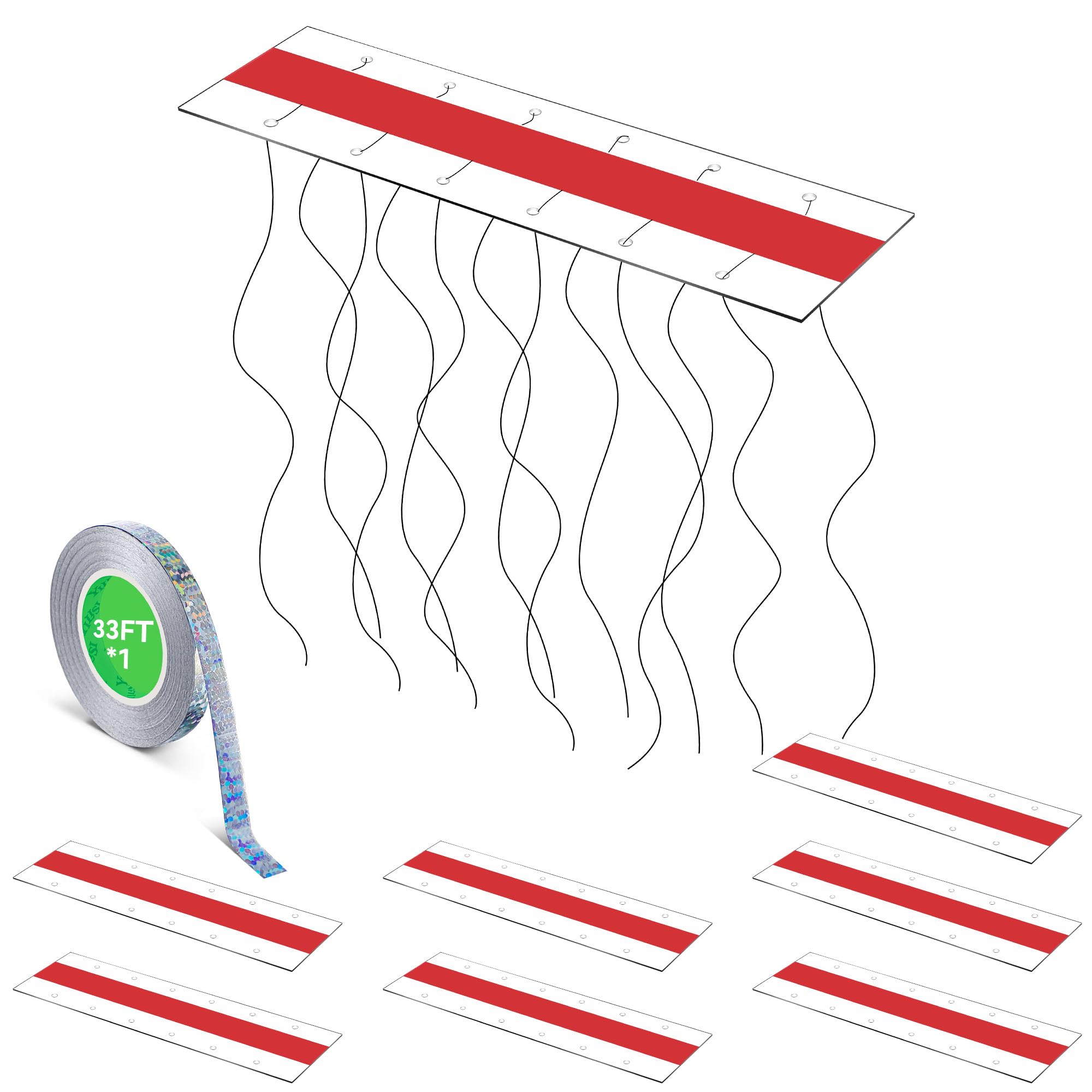 Qualirey 8 tiras adhesivas transparentes de 3 x 11 pulgadas, cinta reflectante disuasoria de pájaros, dispositivos de miedo de ave