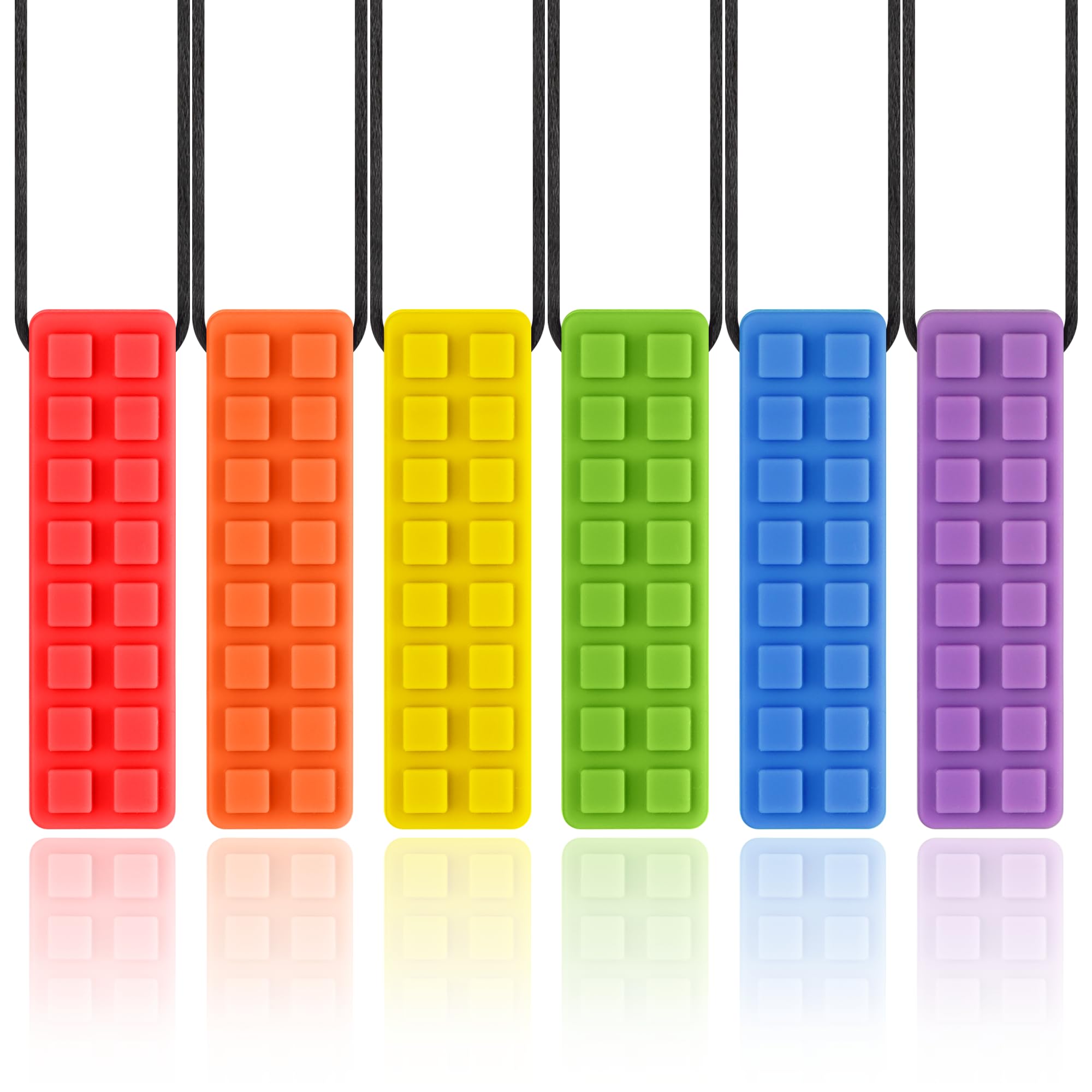 Collares masticables para niños sensoriales, 6 paquetes de collar de silicona para ayudar a la dentición motora oral para masticad