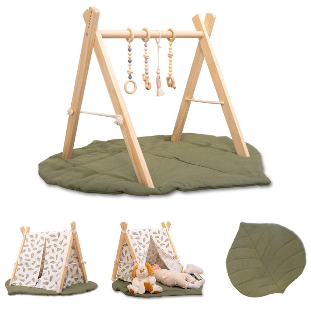 Wossen® Juego de gimnasio y tienda de campaña para bebés, gimnasio de madera Naturel para bebés, juguetes de madera confiables, us