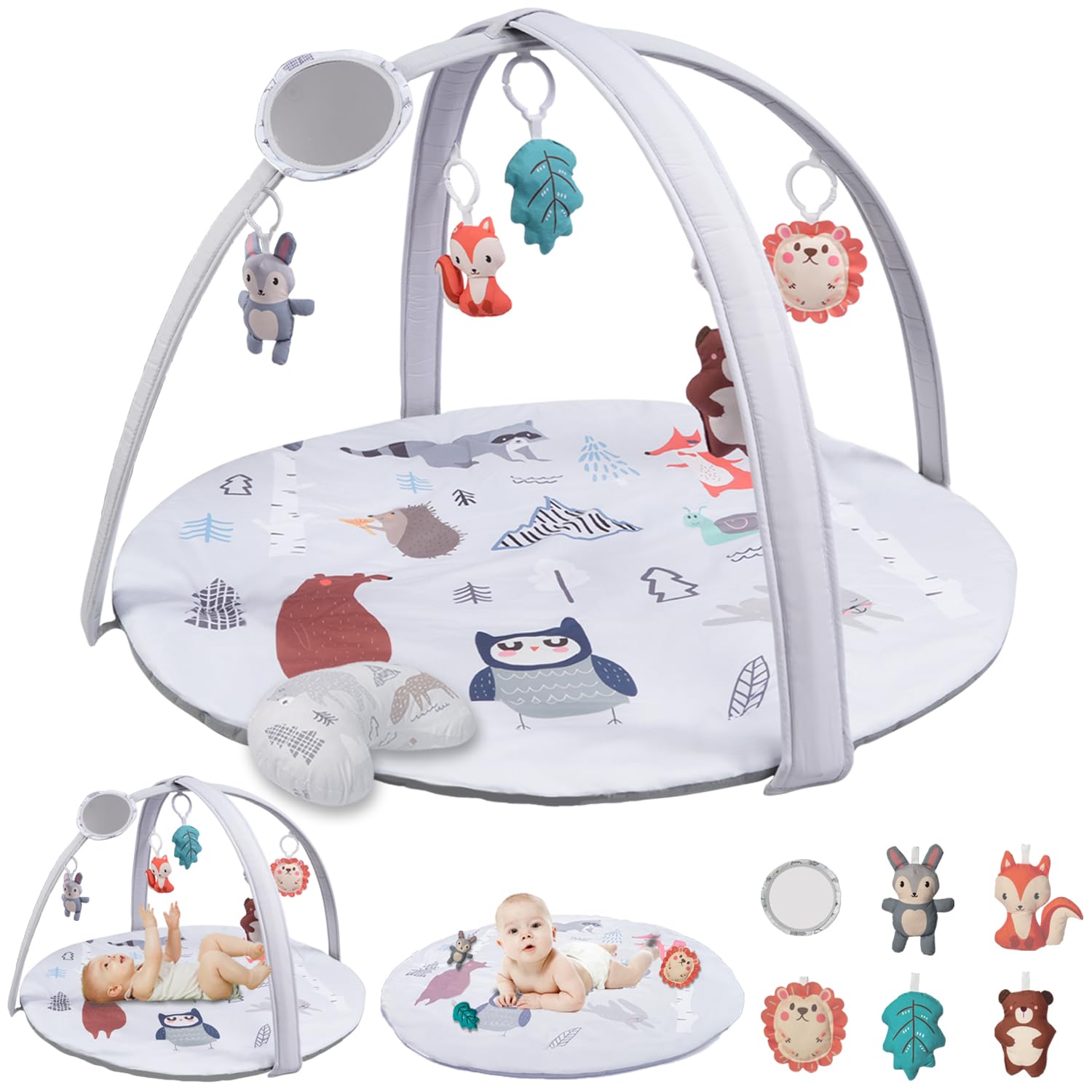 Blissful Diary Tapete de gimnasio y actividades para bebés, con forma de hoja, con 6 juguetes desmontables, promueve las habilidad