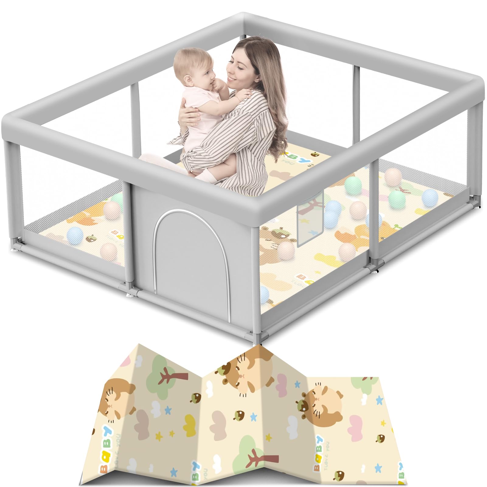 Corralito para bebés de 50 x 50 pulgadas con alfombra, corral de juegos para bebés y niños pequeños, corral con puerta, valla de s