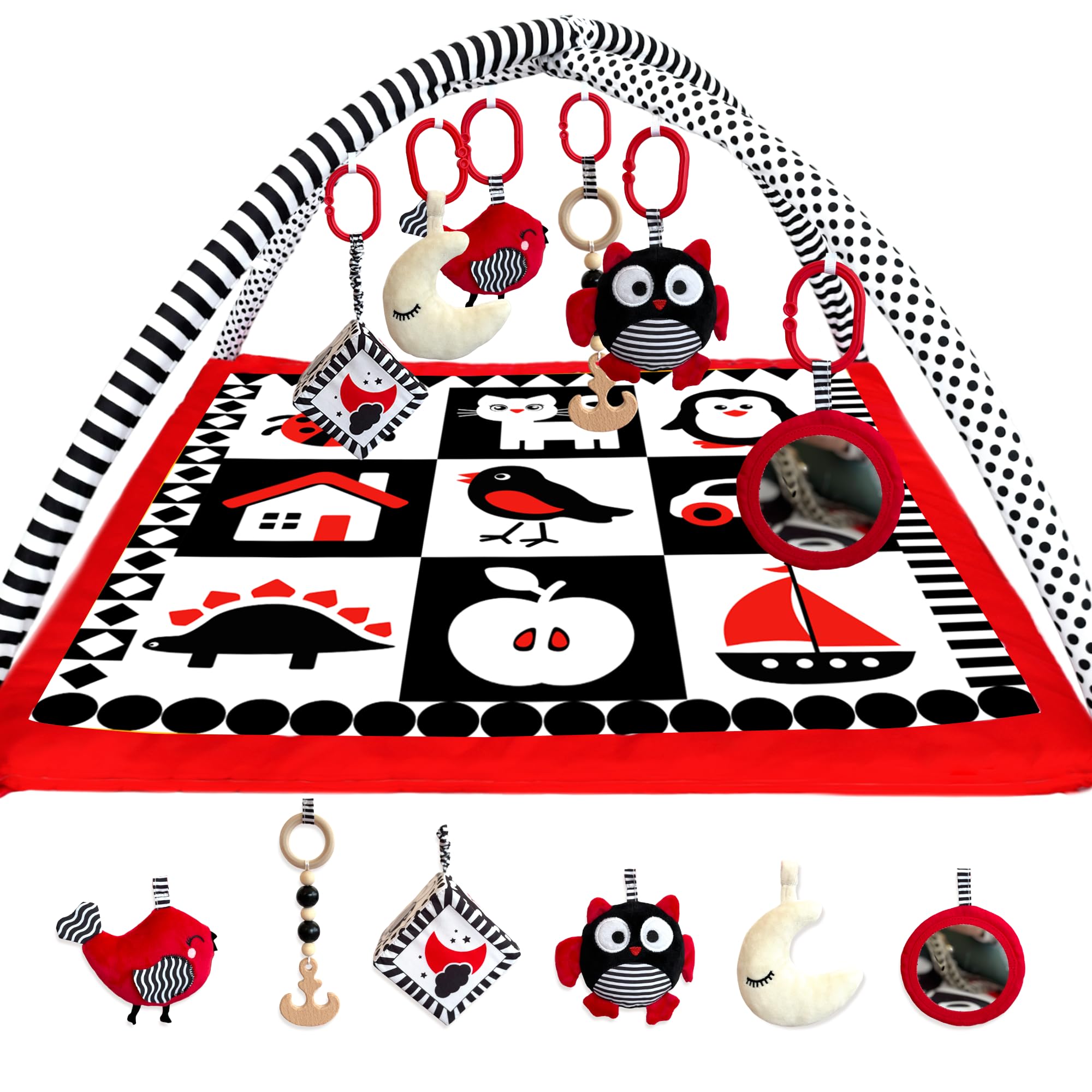 QUOKKA Tapete acolchado para gimnasio para bebé para el tiempo boca abajo, tapete de gimnasio de alto contraste para bebés, 6 jugu
