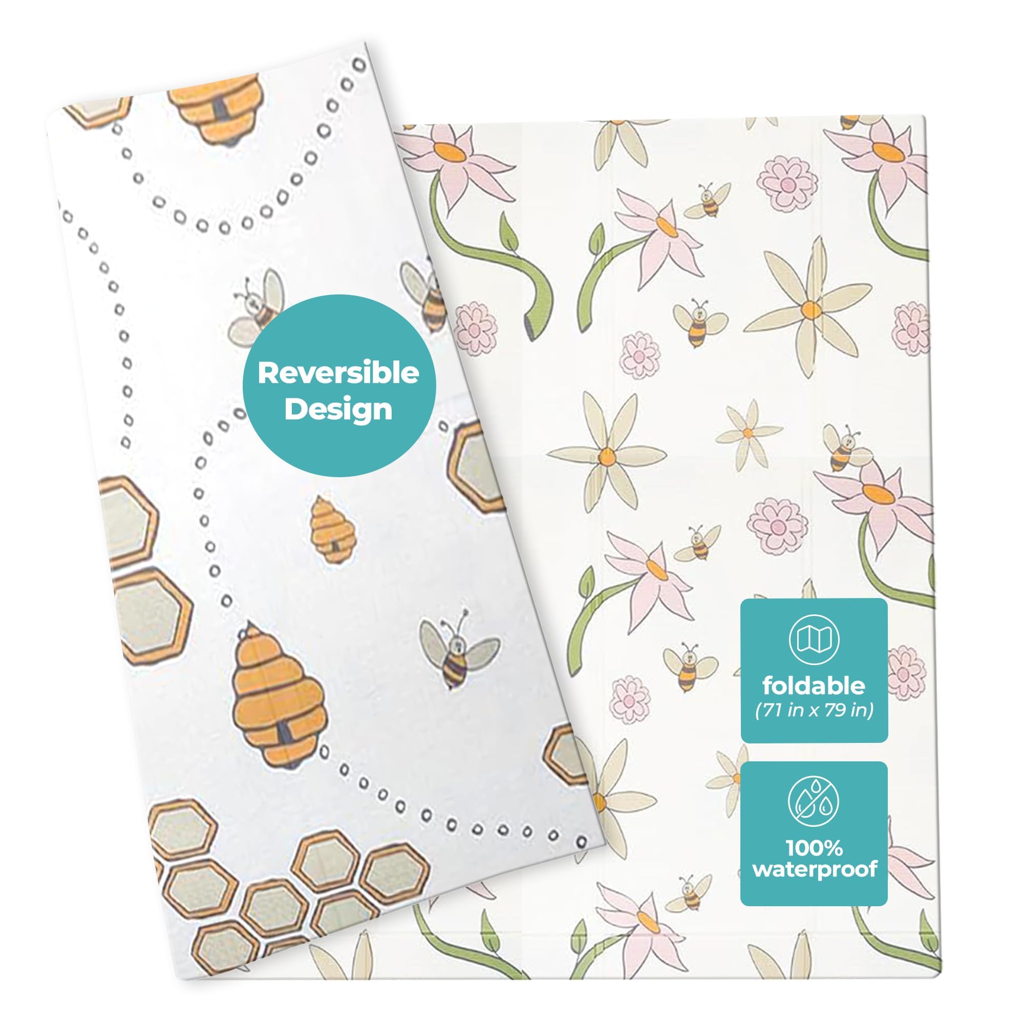Alfombra de juego plegable para bebés de 50 x 50 pulgadas, impermeable, patrón de doble cara, tapete de juego antideslizante para