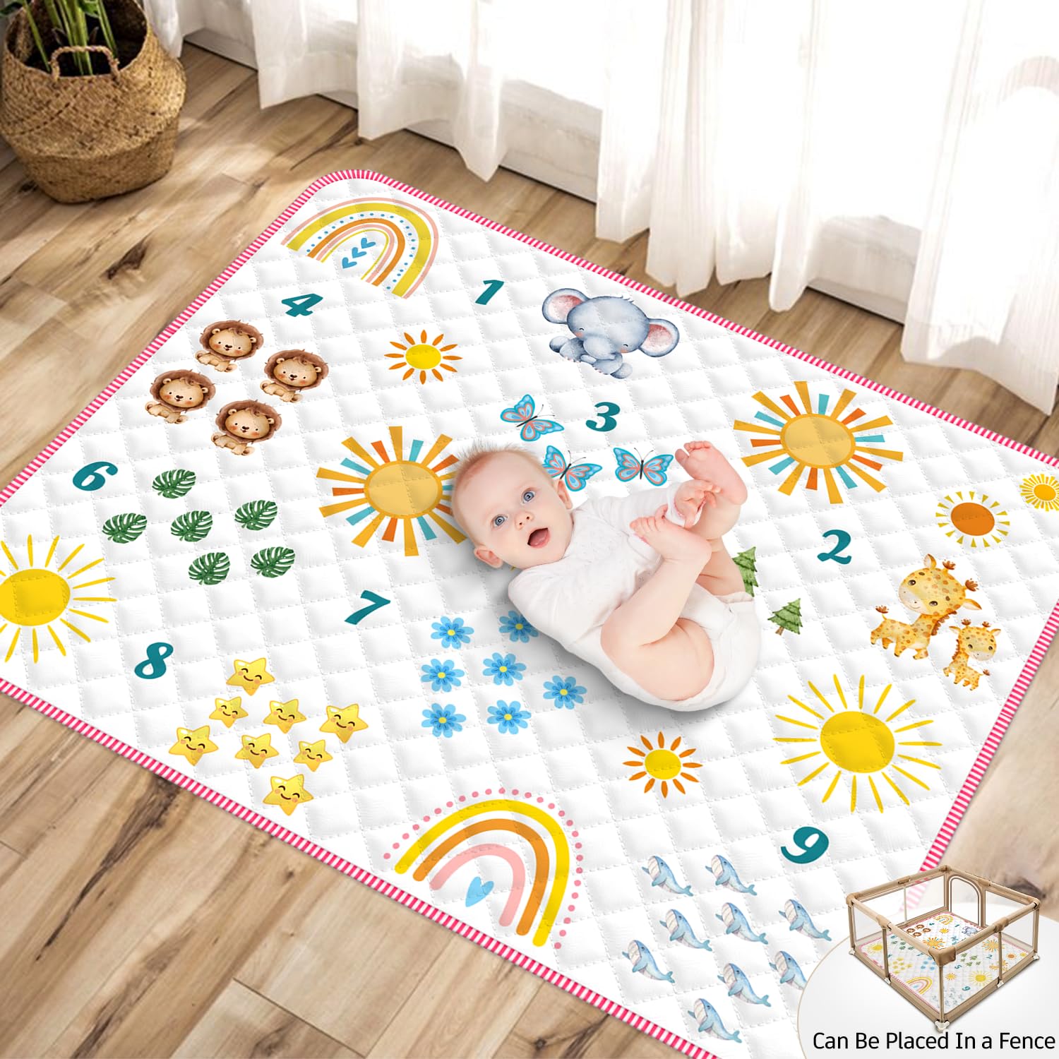 Alfombra de juego para bebés de 71 x 59 pulgadas, tapete de juego para bebés de 6 a 12 meses, tapete de juego para bebés y niños p