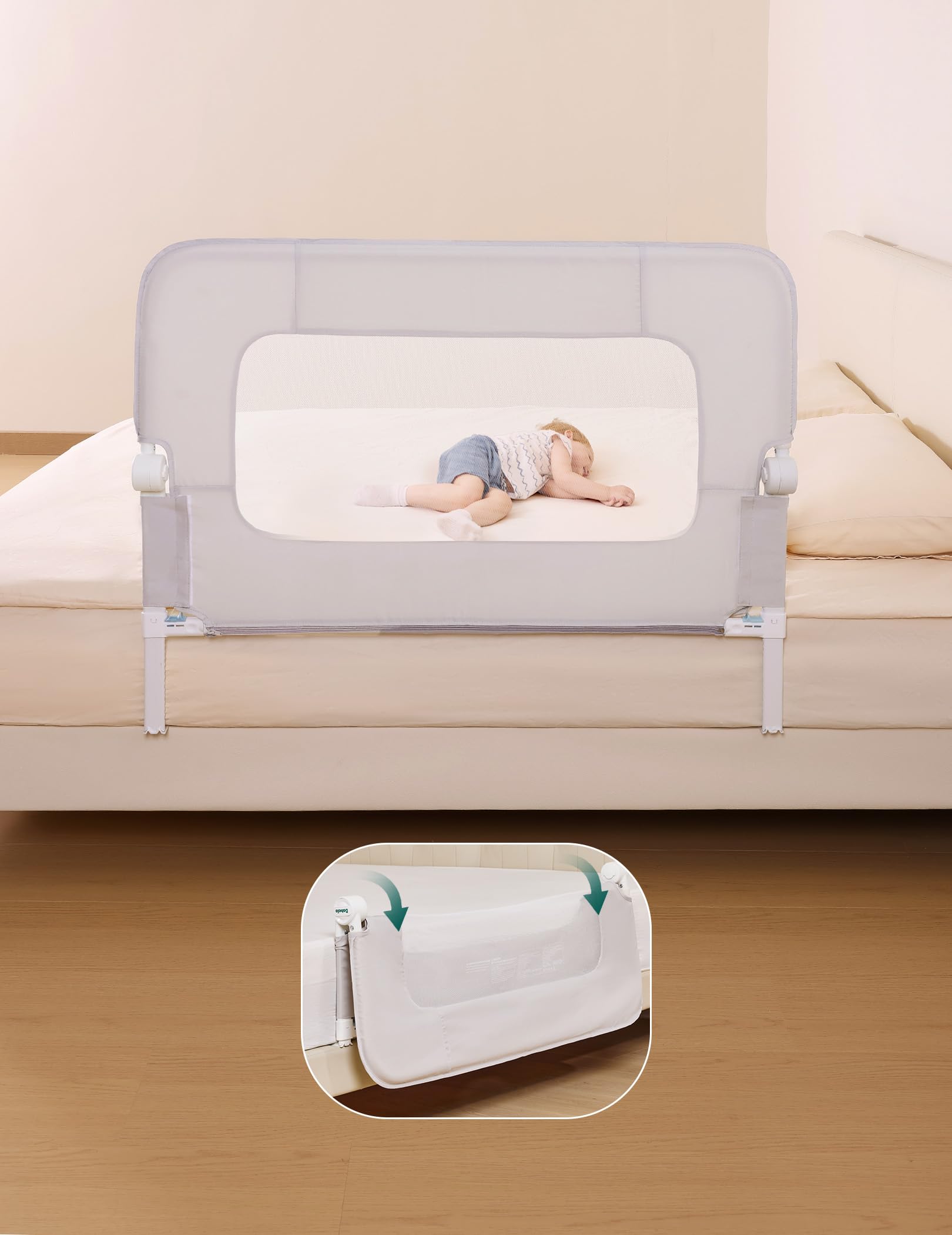 Ciilee Baby Barandas de cama plegables para niños pequeños, barandillas laterales ajustables para camas individuales, barandilla d