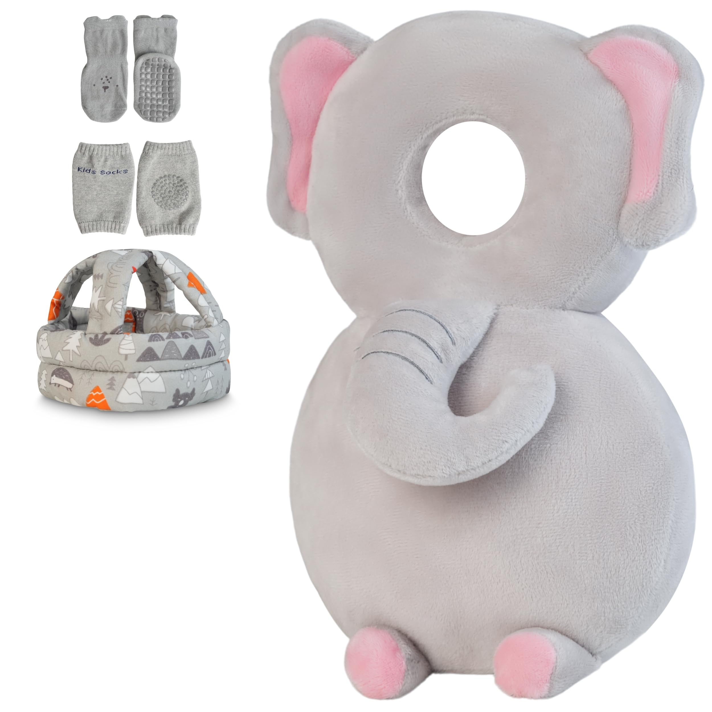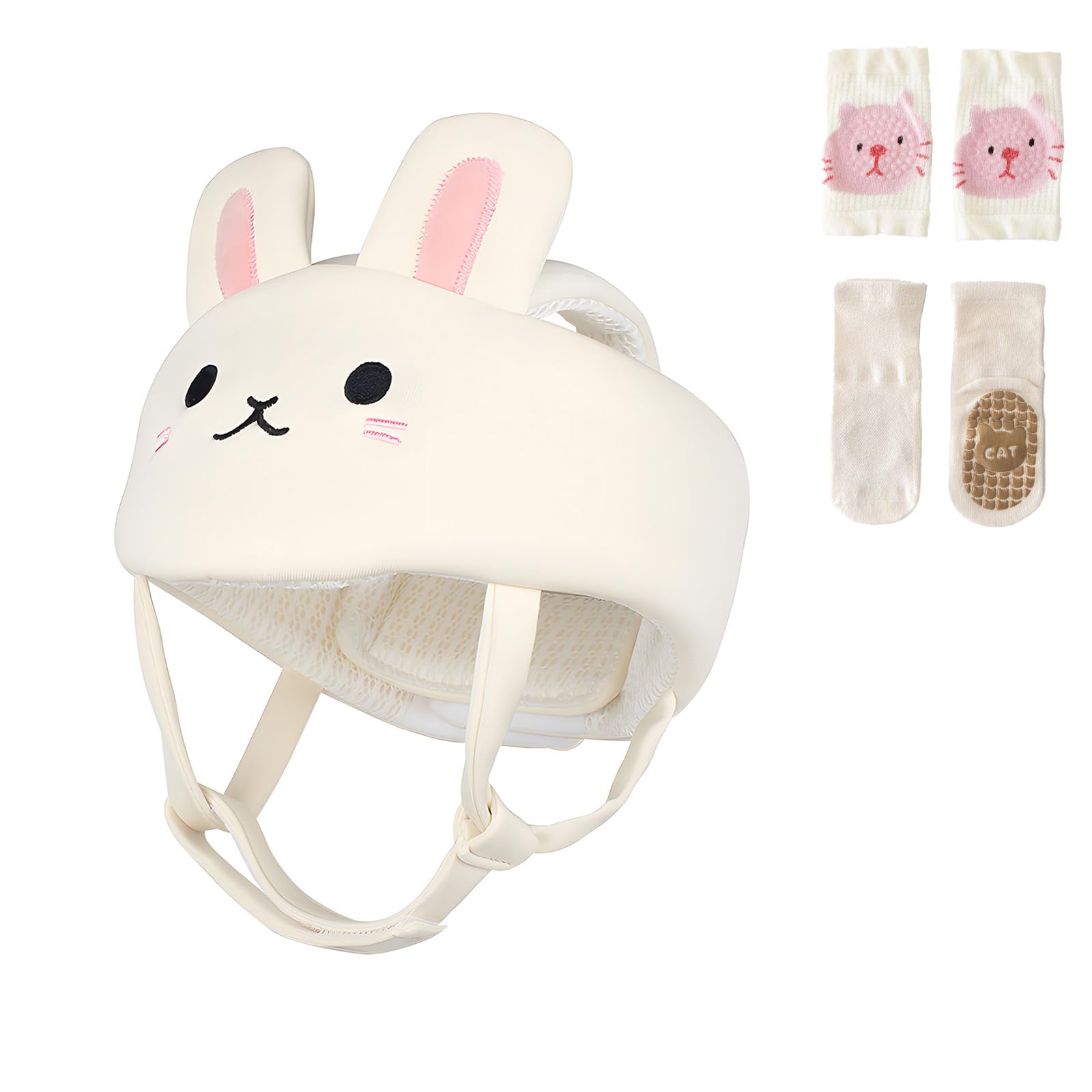 Protector de cabeza de bebé, rodilleras, calcetines antideslizantes, casco ajustable, almohadilla de seguridad para la cabeza, alm