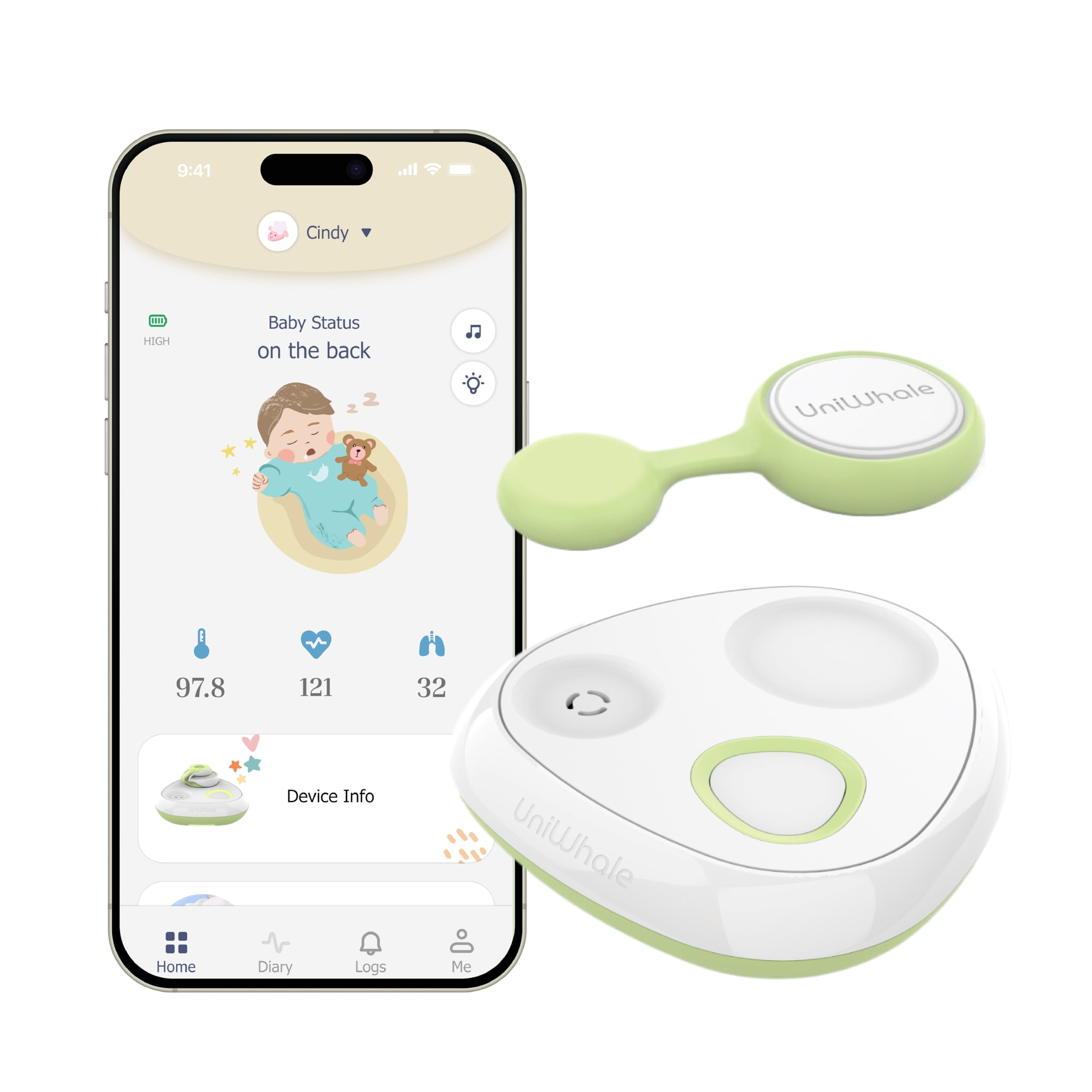 Monitor inteligente AI para bebés con aplicación gratuita, seguimiento de la respiración, frecuencia cardíaca y sueño, alertas en