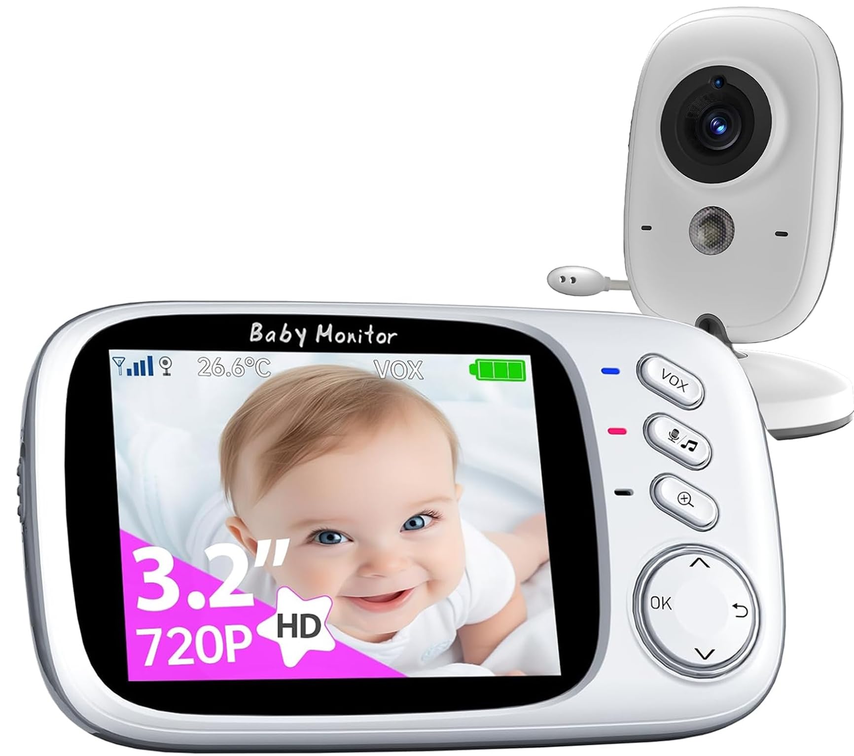 Monitor inteligente para bebé, pantalla LCD de 2.8 pulgadas, visión nocturna, VOX, conversación de 2 vías, 5 canciones de cuna de