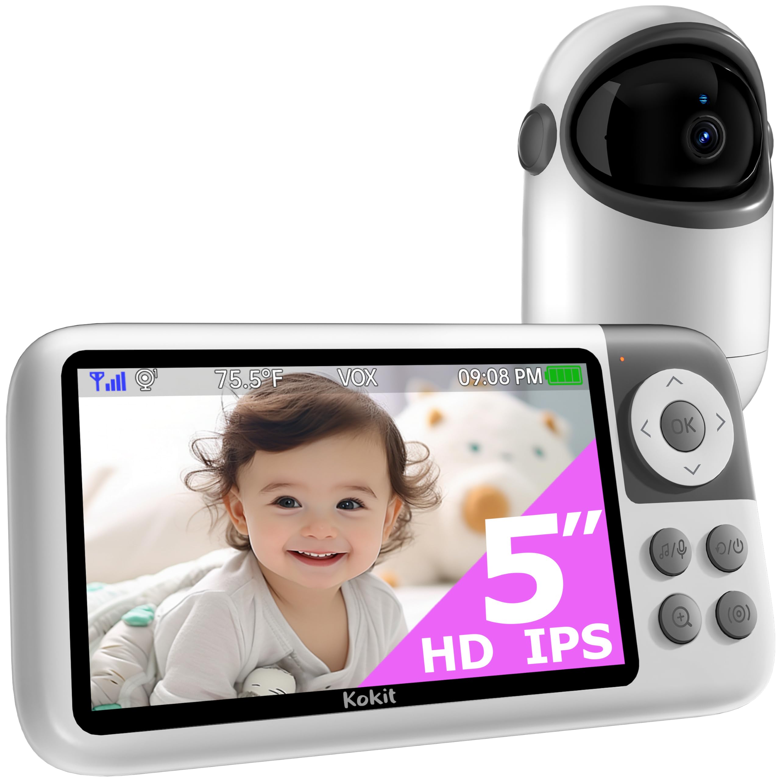 Monitor de bebé con cámara y audio, cámara inteligente HD 2K para bebé, pantalla WiFi de 5 pulgadas, visión nocturna, sensor de hu