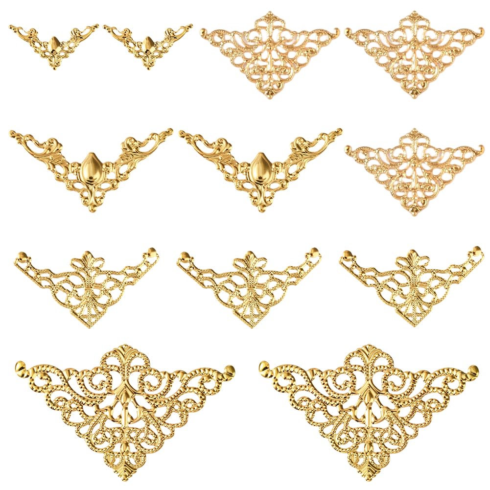 SUNNYCLUE 120Pcs 5 Styles Book Corner Protectors Gold Filigree Corner Embellishments Metal Hollow Triangle Scrapbook Album Decor f
