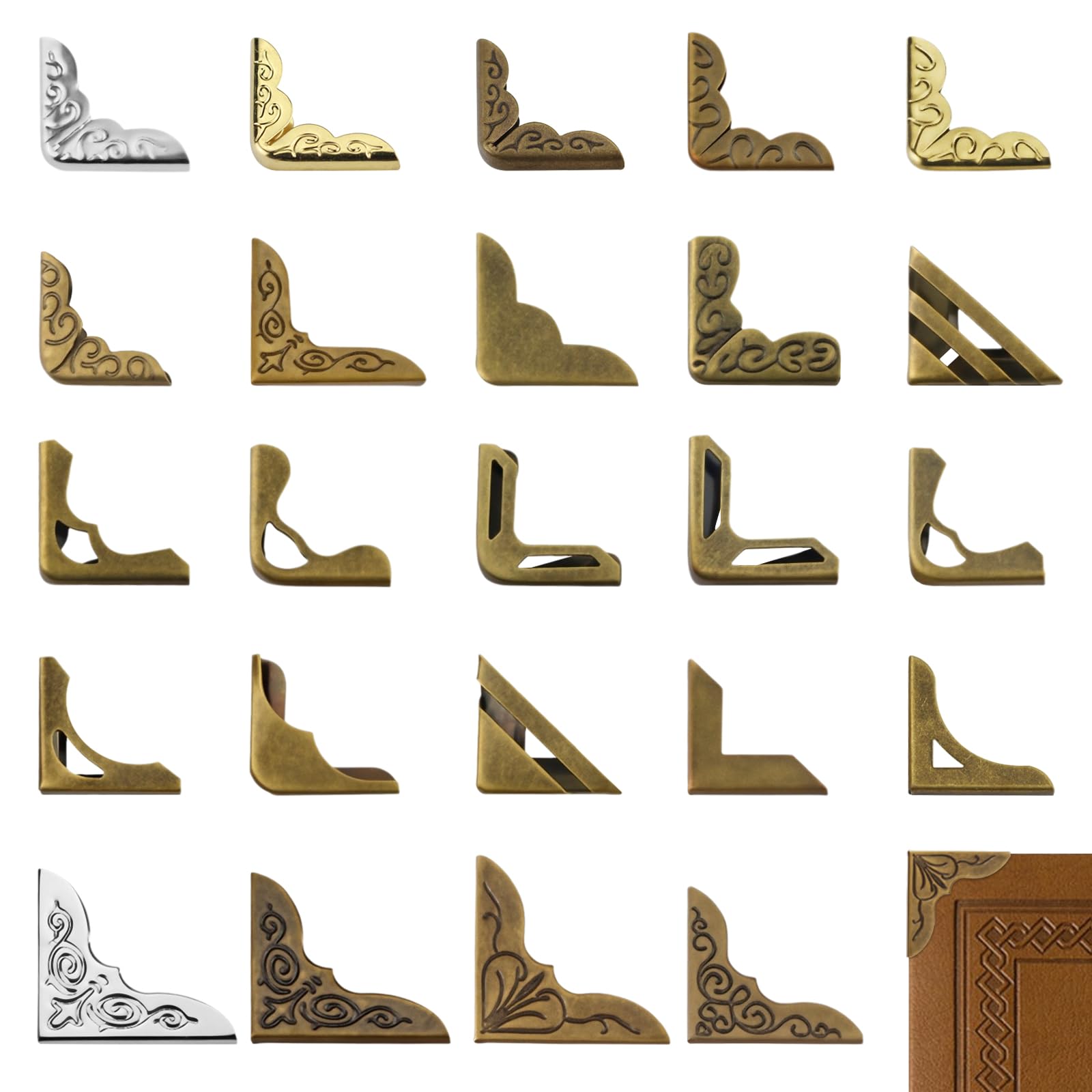 SUPERFINDINGS 50 protectores de esquina de libro de bronce antiguo, cubiertas de borde de aleación, protectores de esquina decorat