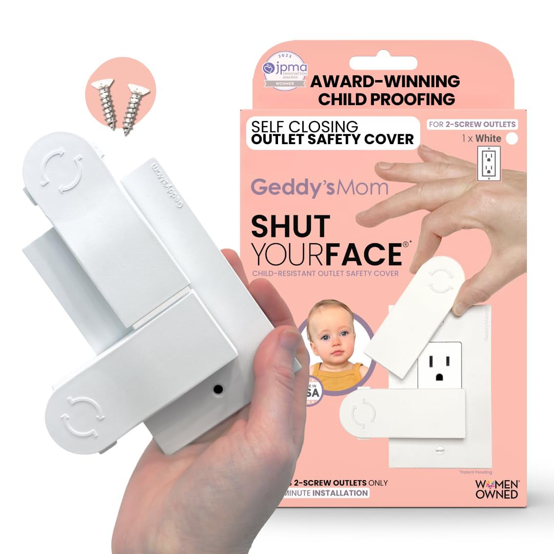 GEDDY’S MOM Shut Your Face | Cubiertas de salida a prueba de niños de cierre automático | Cubiertas de enchufe y salida galardonad