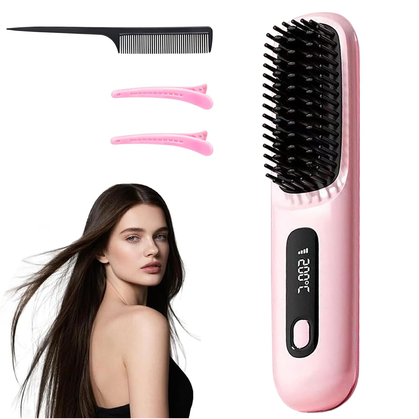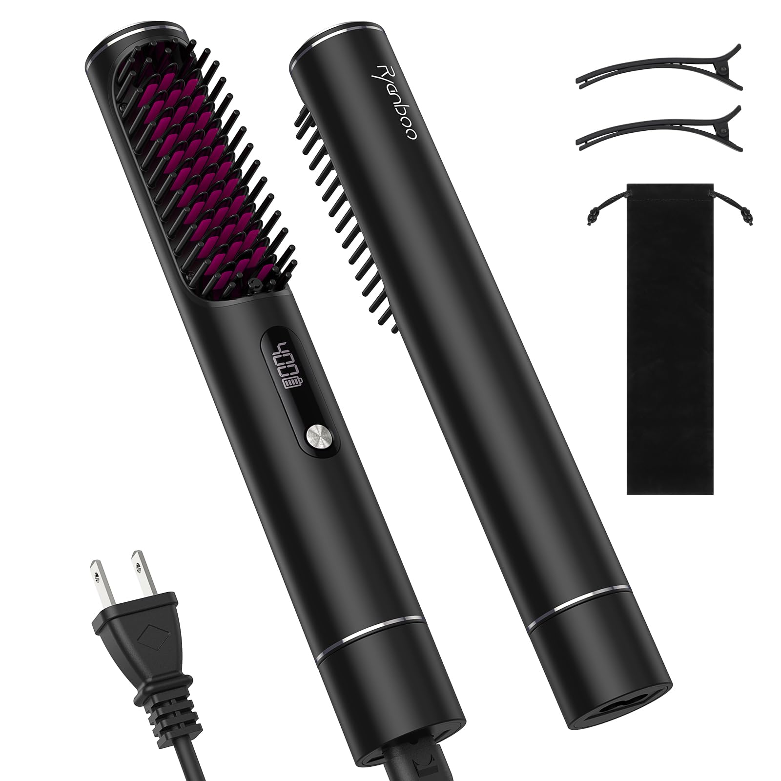 Go Brush Pro 2025 New Cordless Hair Straightener Brush – 199 Million Negative Ions, Compact & Travel-Friendly with LED Display, 40