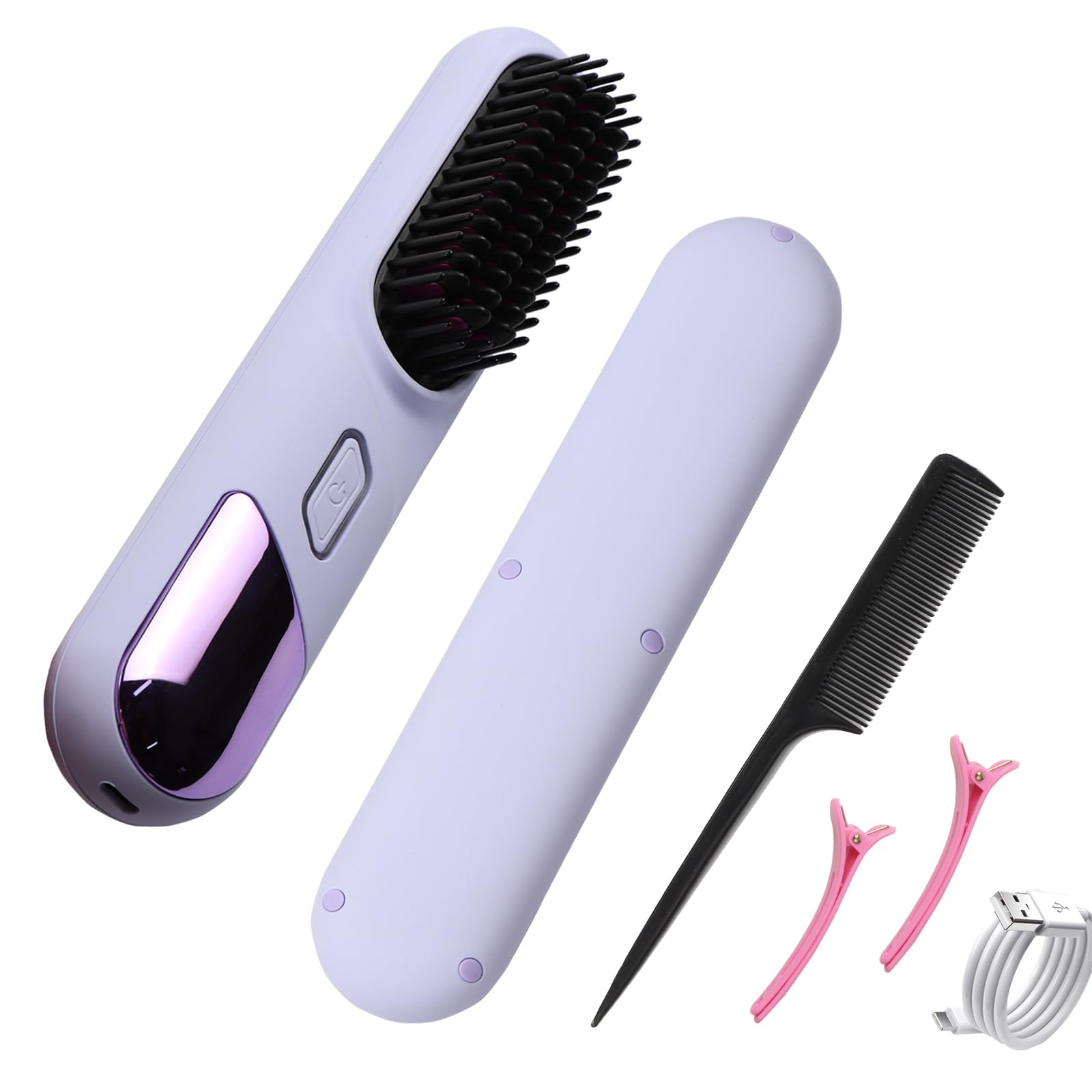 Cepillo alisador de pelo inalámbrico mejorado, cepillo alisador portátil para viajes con cargador rápido de 45 W, peine alisador t