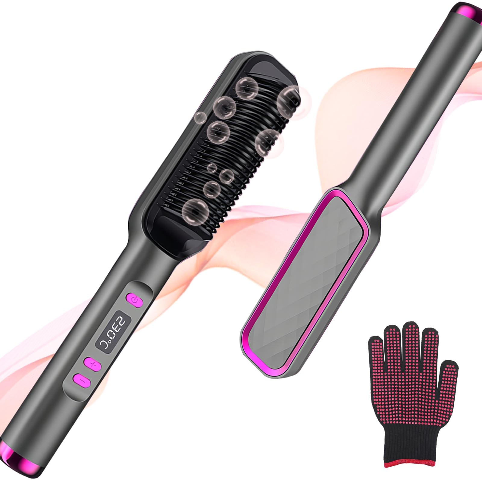 Cepillo alisador de cabello, aceite caliente, peine iónico de 9 temperaturas con pantalla LED, tecnología PTC de calentamiento ráp