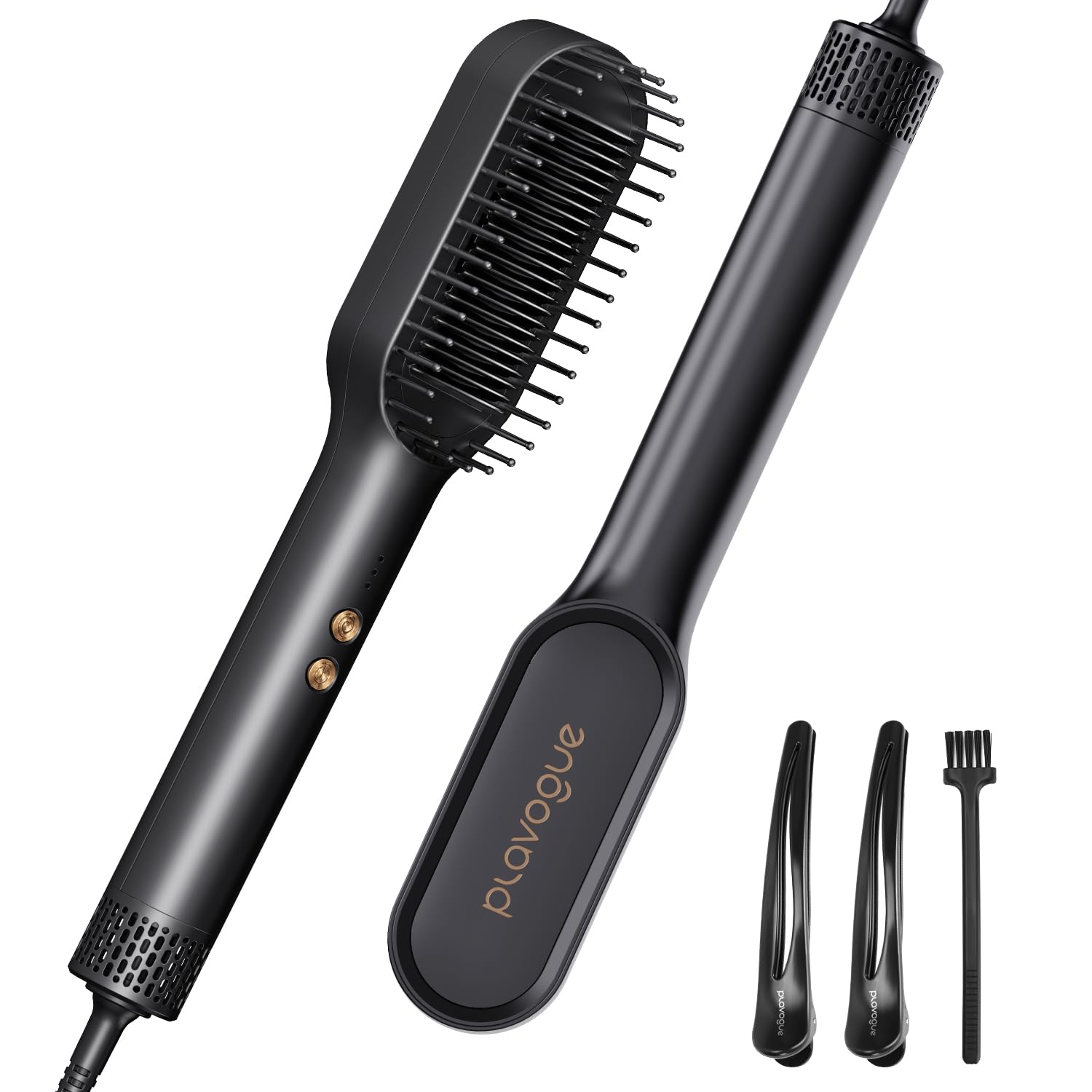 PLAVOGUE Cepillo iónico para alisar el cabello con función de aire caliente, calentamiento rápido de 30 segundos de doble voltaje,