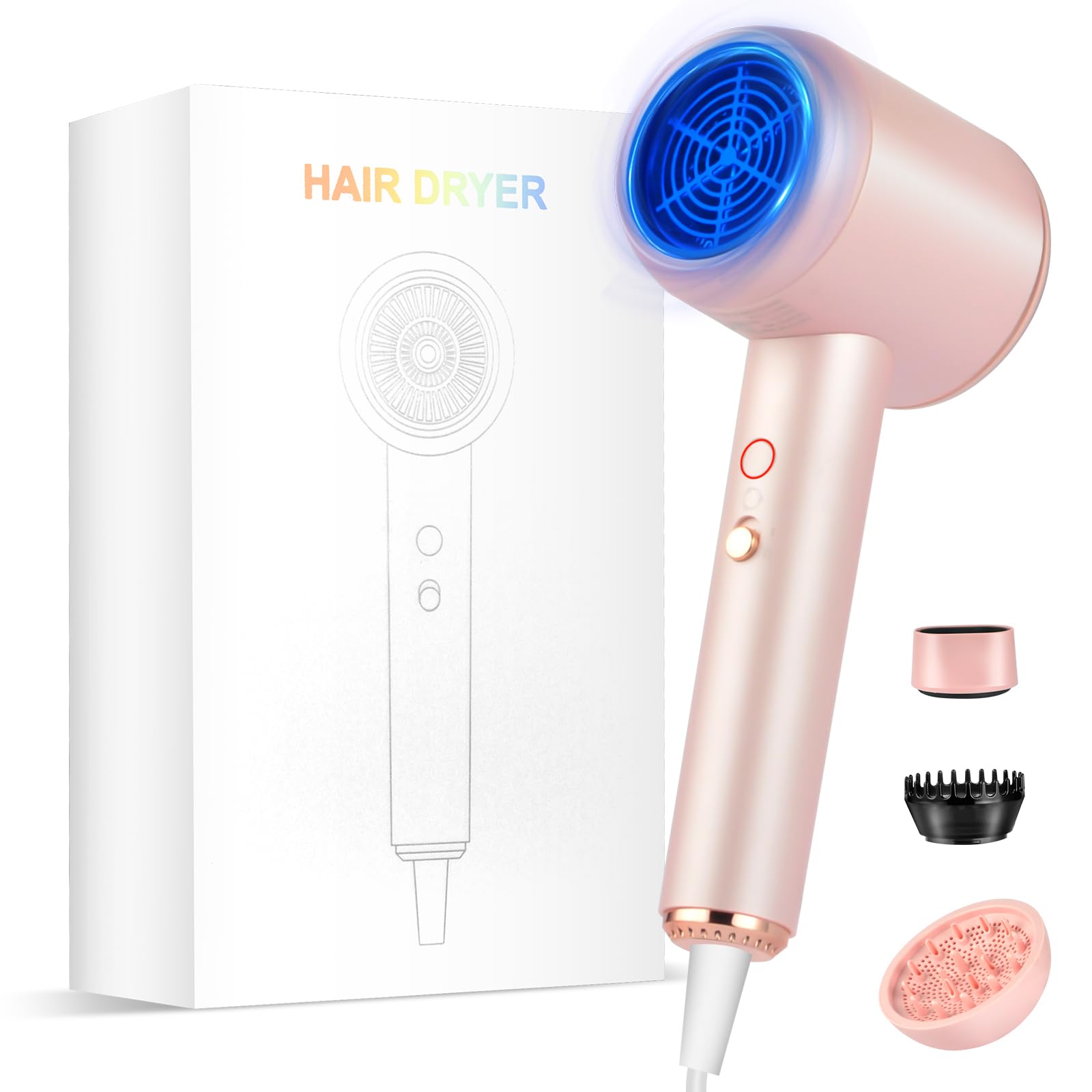 Secador de pelo, 160000 RPM de alta velocidad con 200 millones de iones negativos, secador de pelo profesional de bajo ruido con d