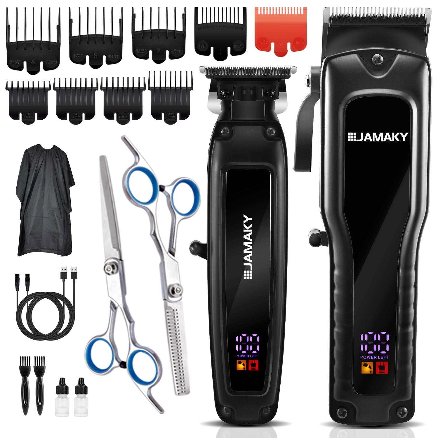 Juego de cortapelos y recortadora de pelo negro, cortadora de pelo recargable y recortadora para uso doméstico, cuchillas de cerám