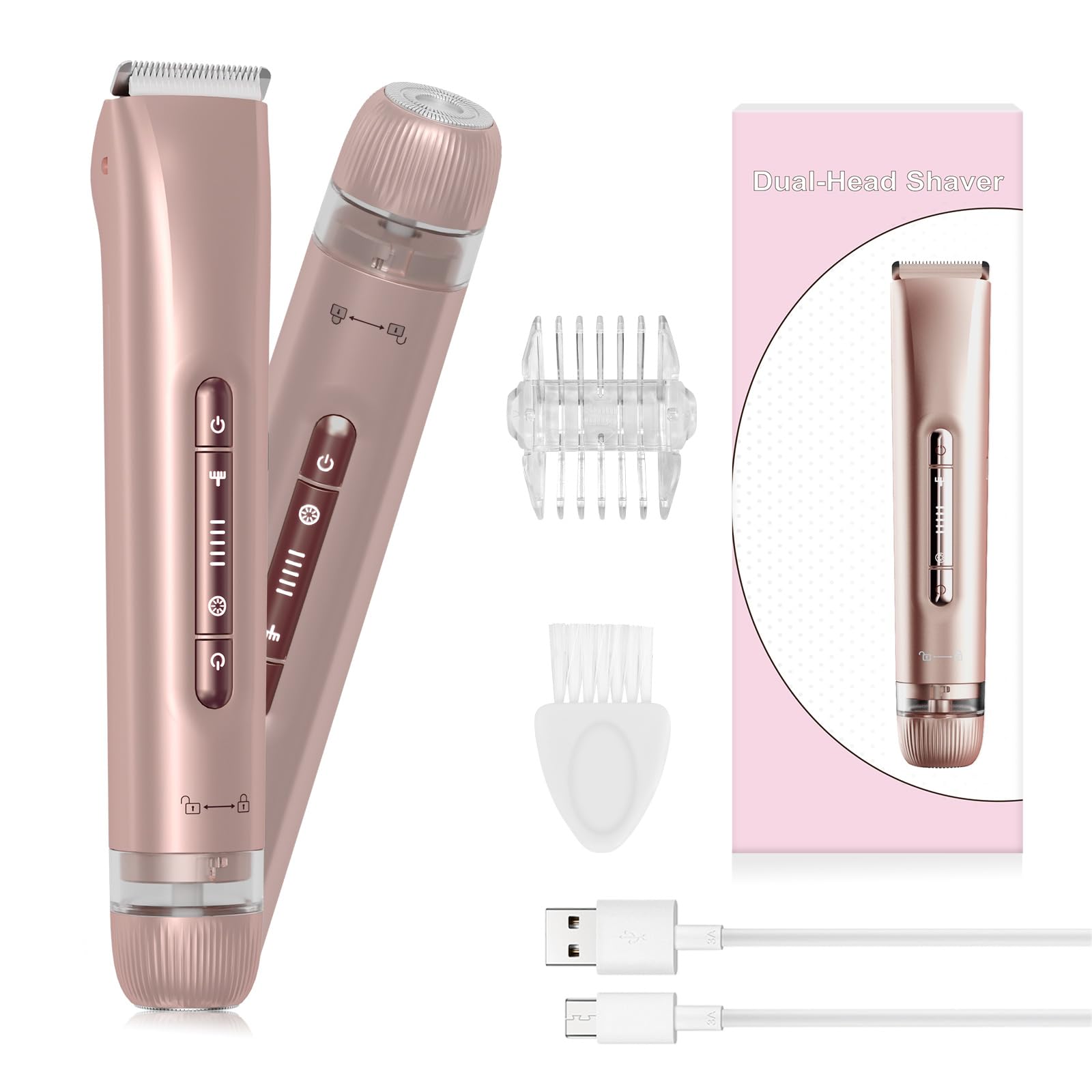 Recortadora de bikini para mujer, afeitadora eléctrica 2 en 1 de doble cabeza, afeitadora eléctrica profesional recargable sin dol
