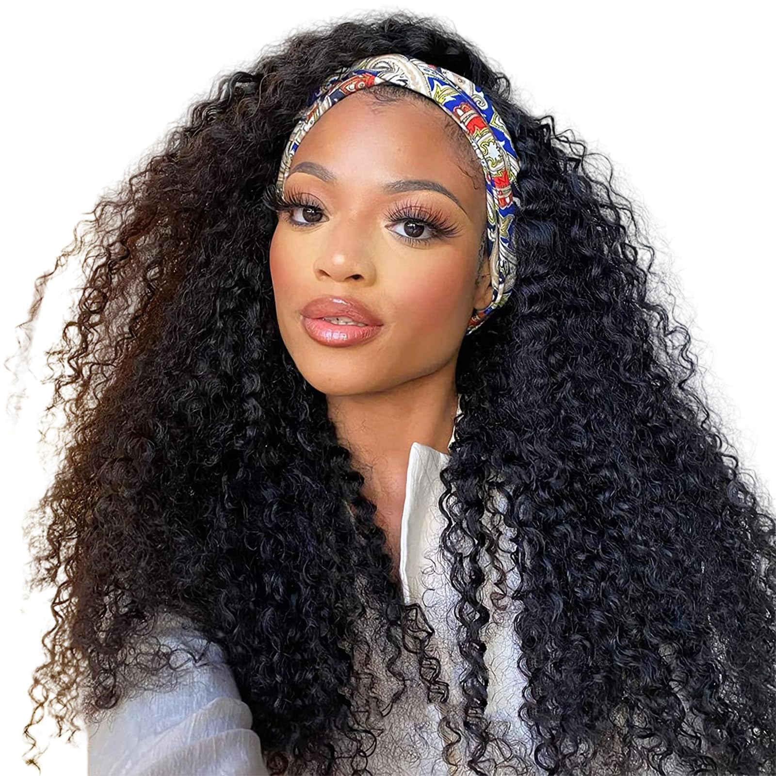 Peluca de cabello humano rizado con diadema de 30 pulgadas, hecha a máquina, sin frente de ondas profundas, pelucas de cabello hum