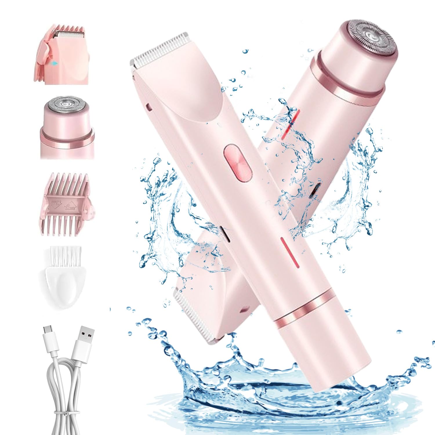 Maquinillas de afeitar eléctricas para mujer, afeitadora corporal recargable 5 en 1, removedor de vello húmedo y seco impermeable,